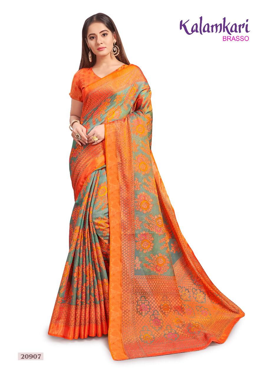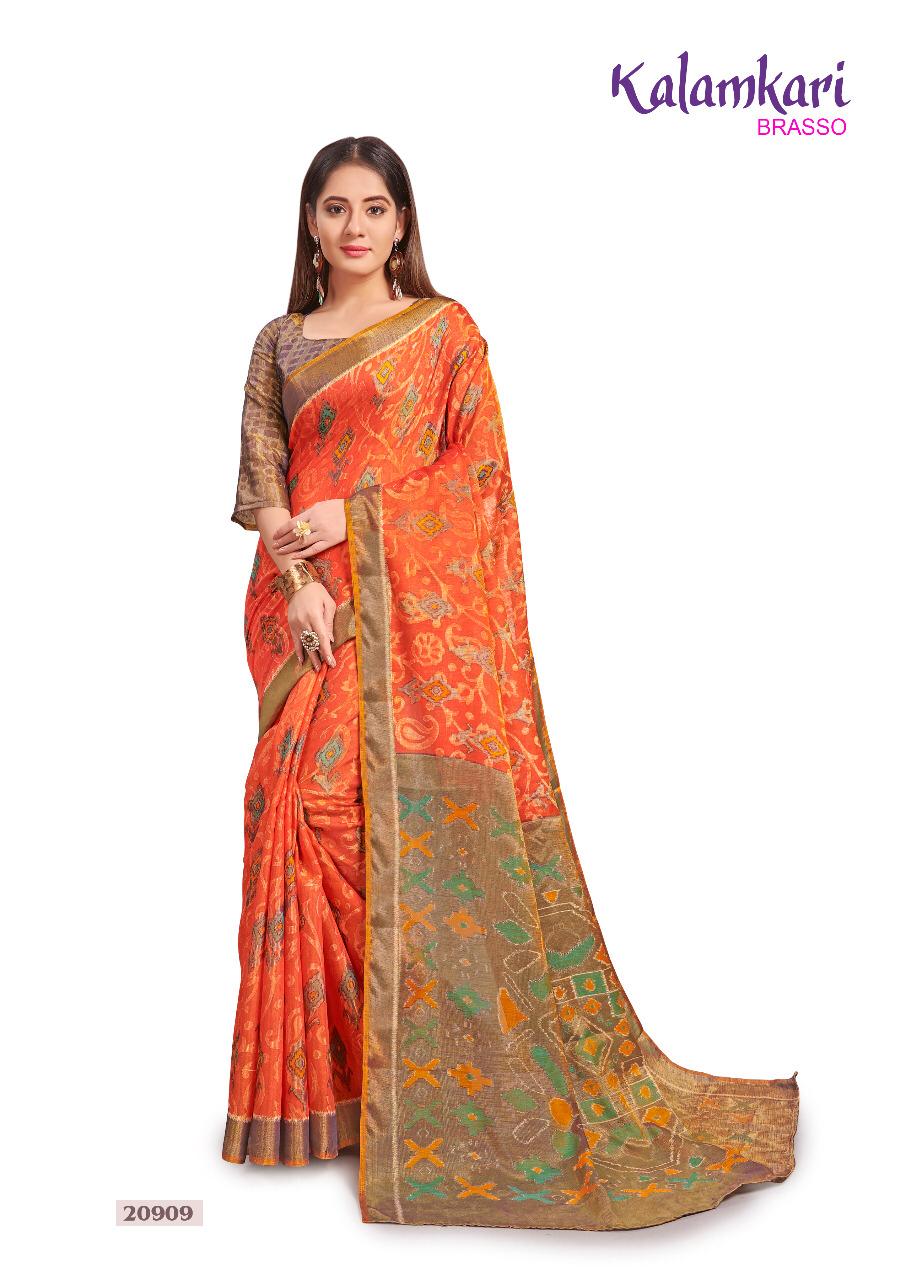 Mintorsi Kalamkari Brasso Ethnic Wear Designer Brasso Saree