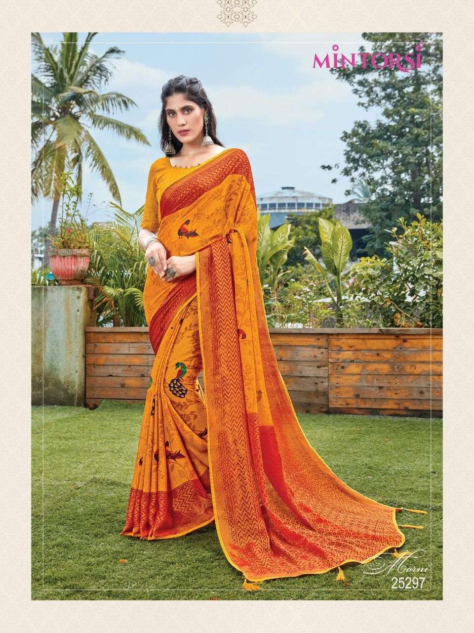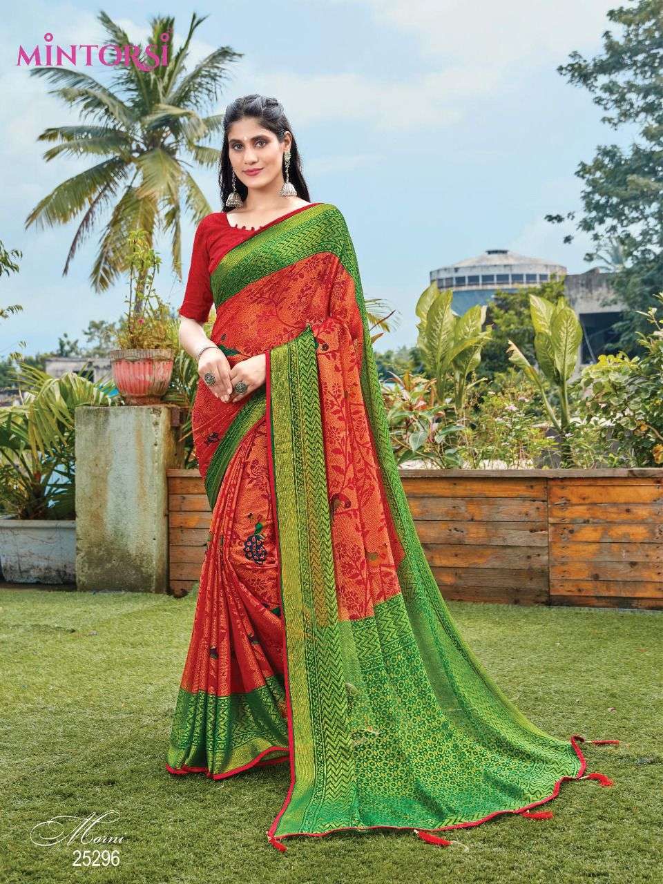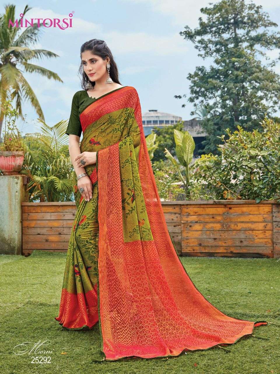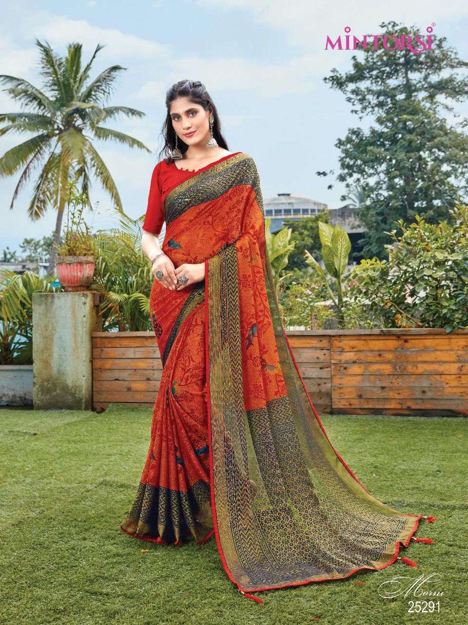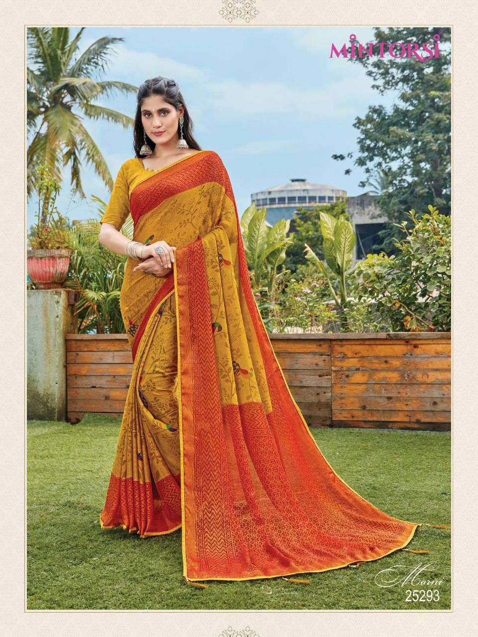 Mintorsi morni series 25291 to 25298 chiffon brasso with exclusive lace piping fancy sarees