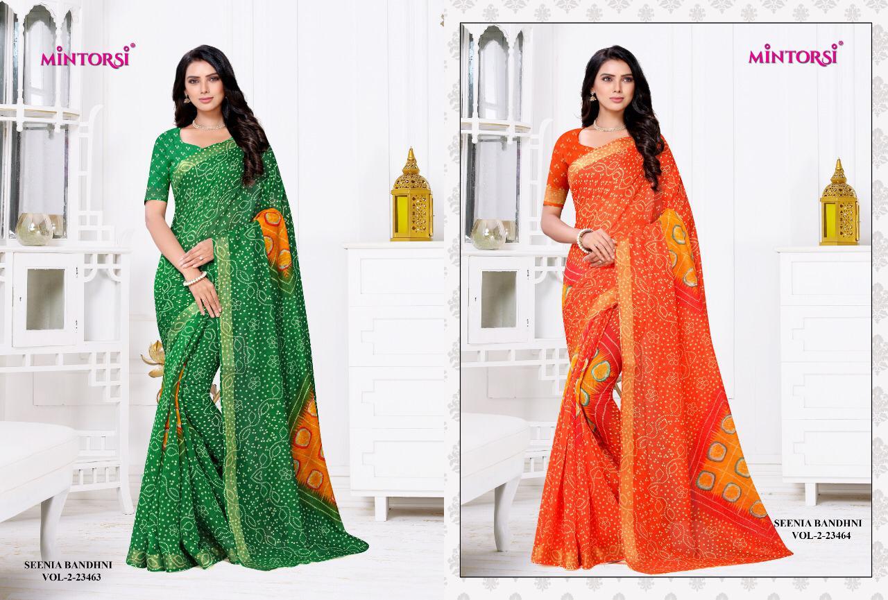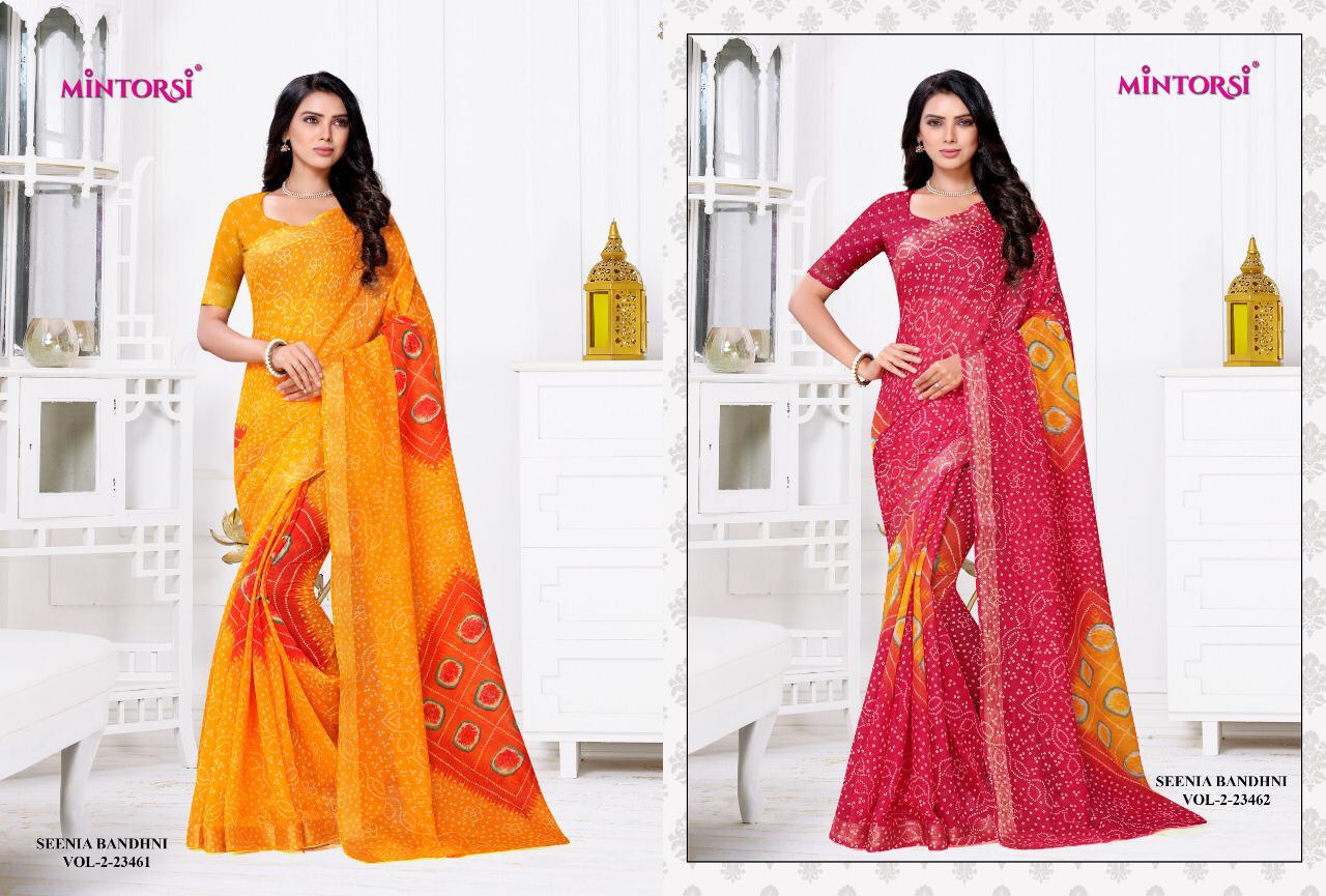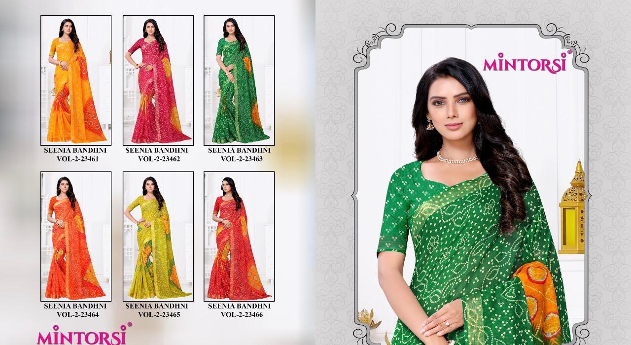 Mintorsi Seenia Bandhni Vol 2 Cotton Silk Saris Wholesaler