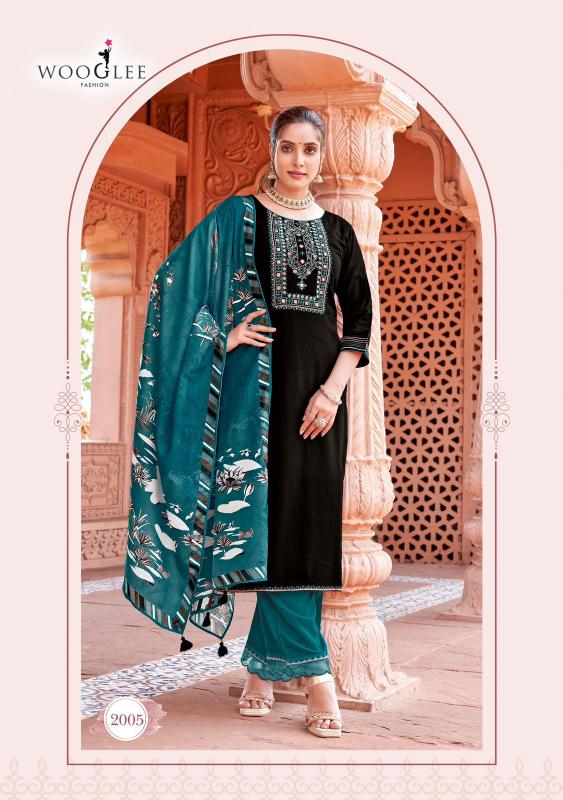 Brand Name : WOOGLEE Catalog : Miraan Design : 6 Fabric : Heavy Rayon Size : S(36), M(38), L(40), XL(42), XXL(44), 3XL(46) Rate : 940 / Pic + GST Dispatched Redy stocks |