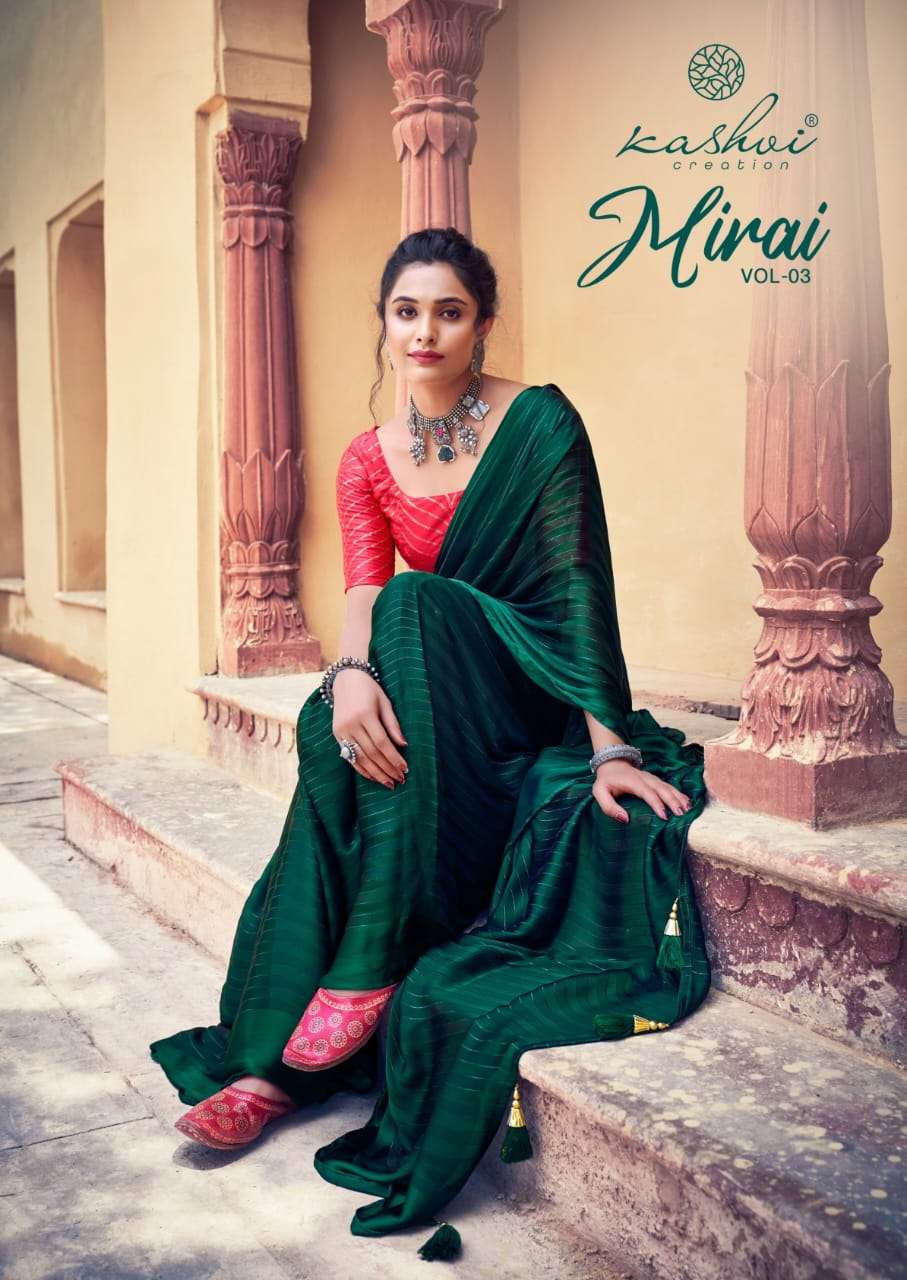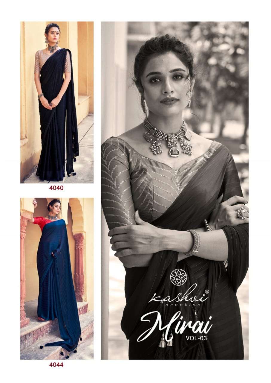 mirai vol 3 by kashvi creation soft satin fancy saree with designer blouse peice collection