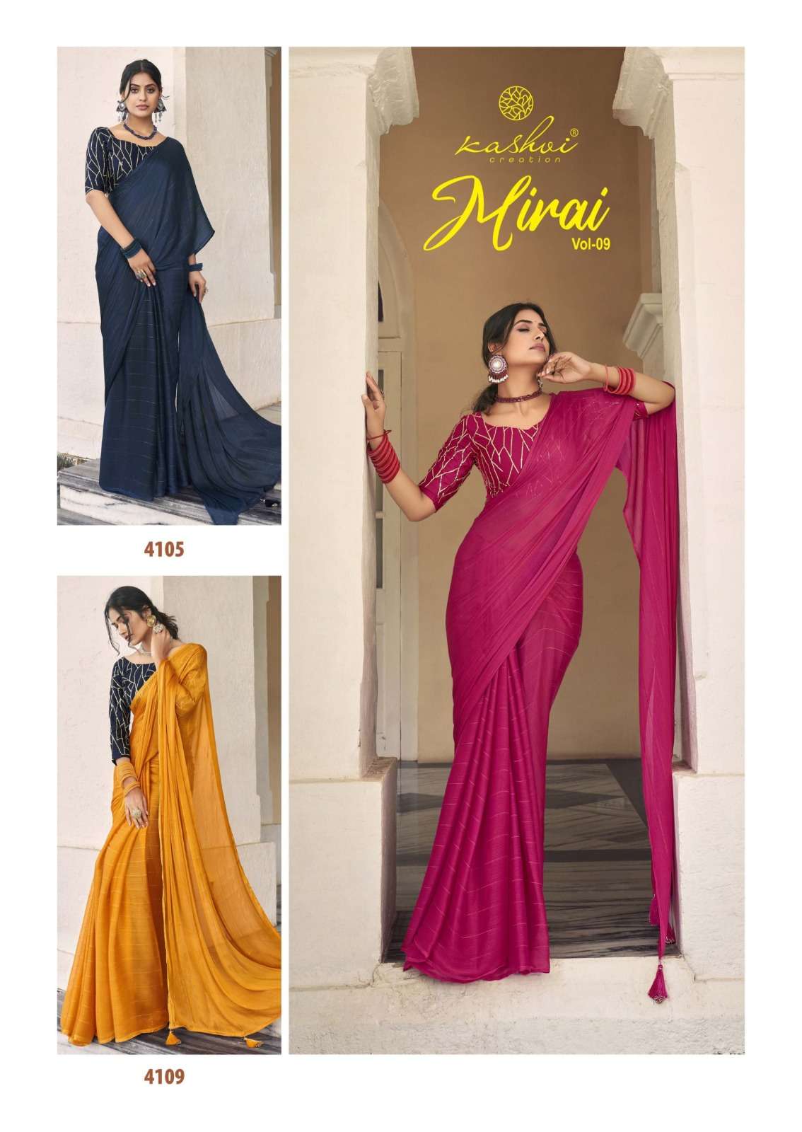 mirai vol 9 by kashvi creation soft satin sarees with embroidery blouse supplier