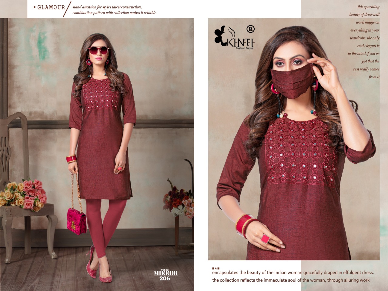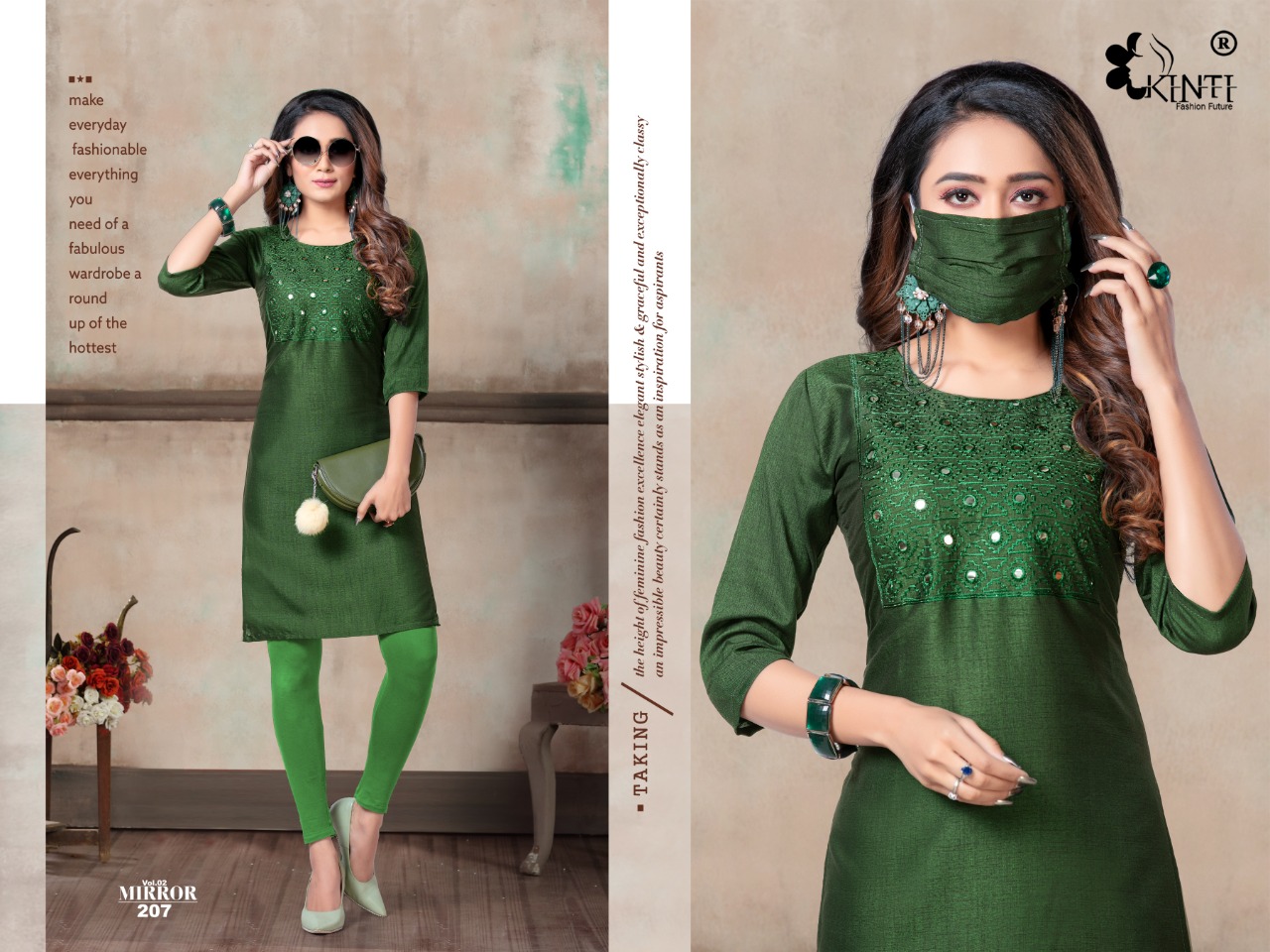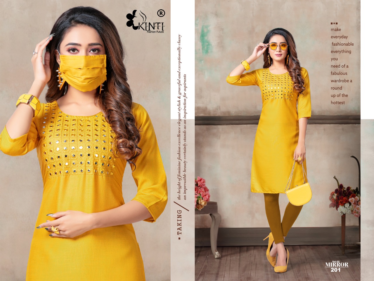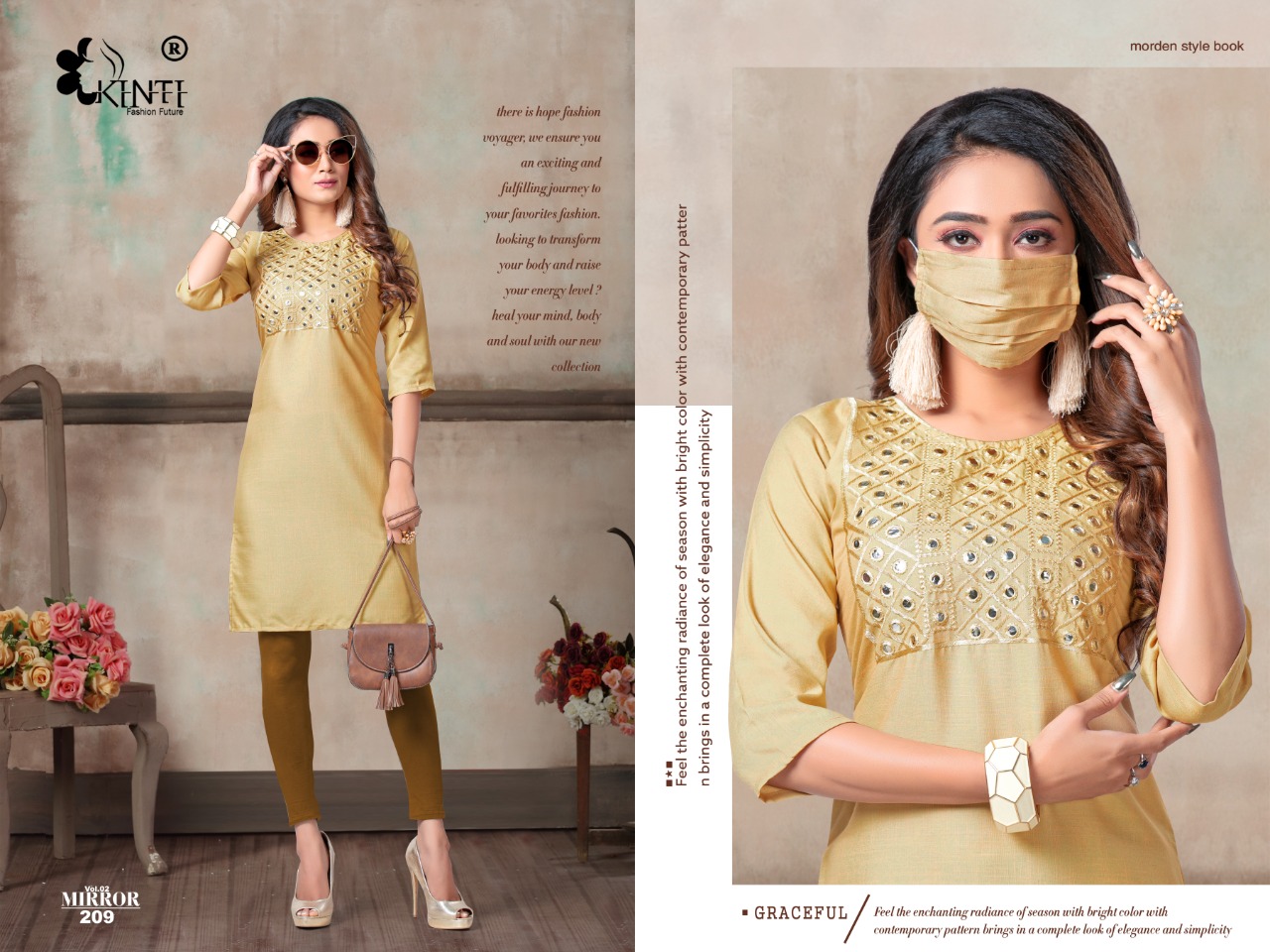 Mirror Vol 2 By Kinti Rayon Casual Wear Kurti With Matching Free Mask Trader
