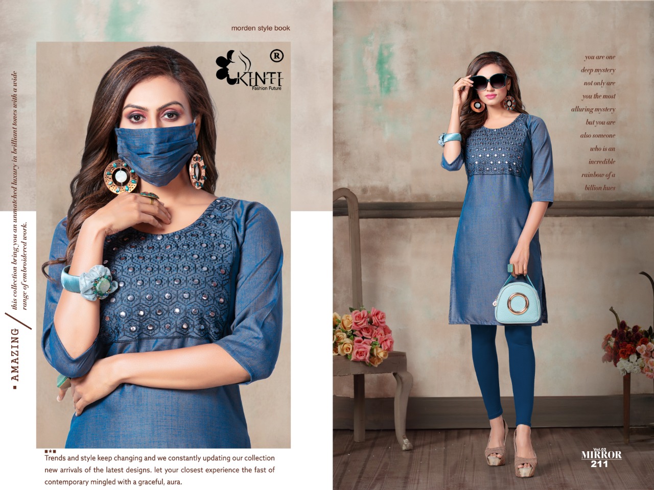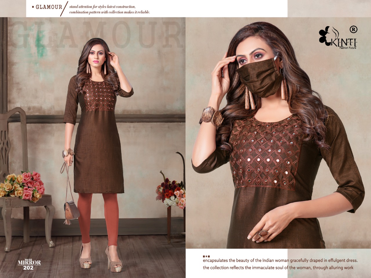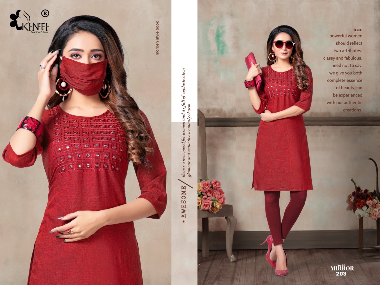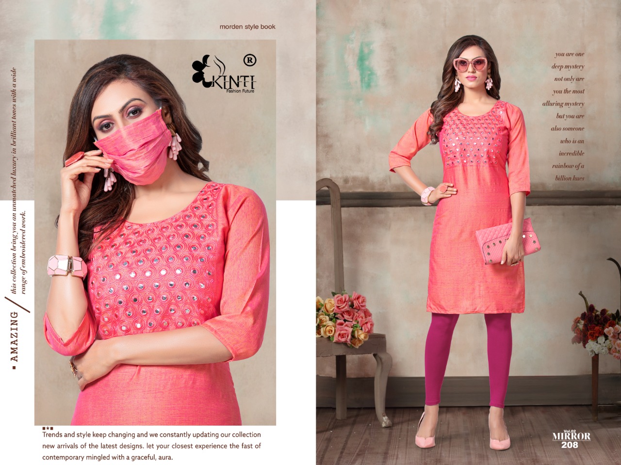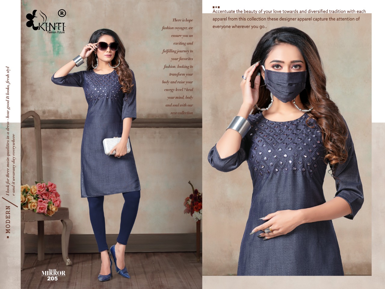 Mirror Vol 2 By Kinti Rayon Casual Wear Kurti With Matching Free Mask Trader