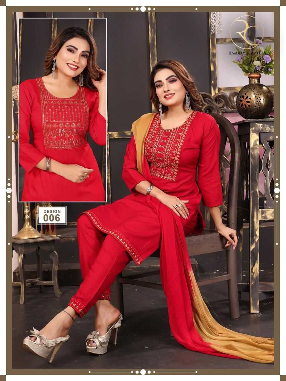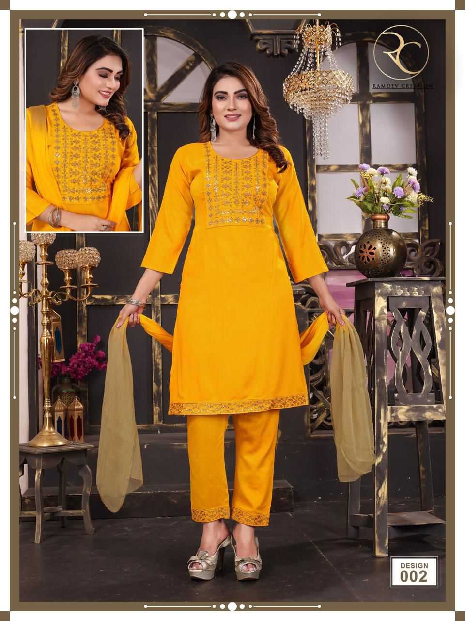 Dear Customers, Welcome to *RAMDEV * (KURTI) We are introducing Ramdev new catalog 📕Catalogue name:- MIRZA VOL 2 👗CLOTH:- Riyon 14 kg heavy top heavy embroidery work and Bottam Riyon 14 kg pent with heavy embroidery work with nazmin dupatta sillai pattern ✅Concept :- designer kurti 3 pc Size:- M L XL XXL 3XL |