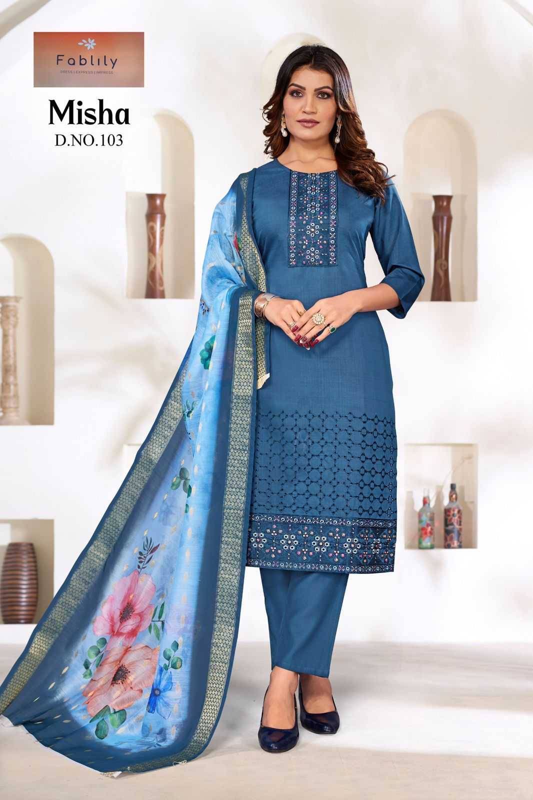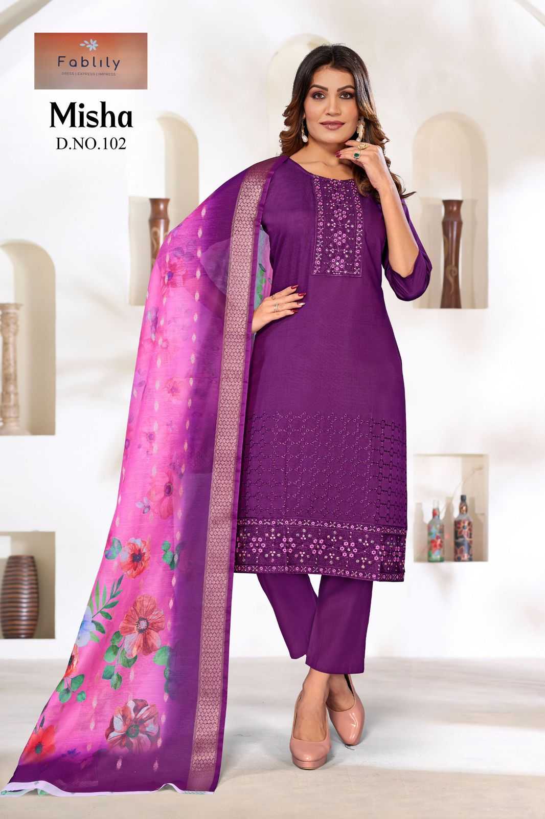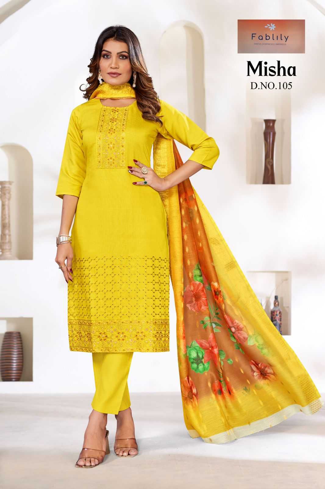 misha by fablily vetican gold fully stitch attractive design combo 3pcs dress