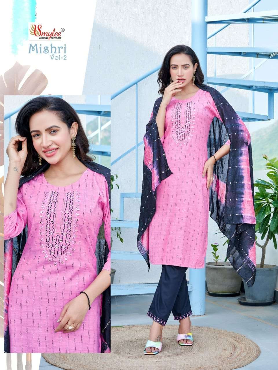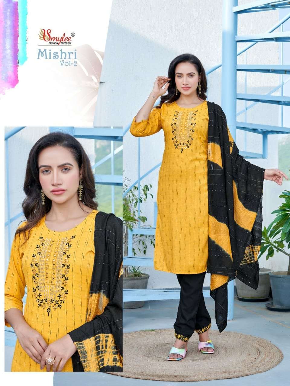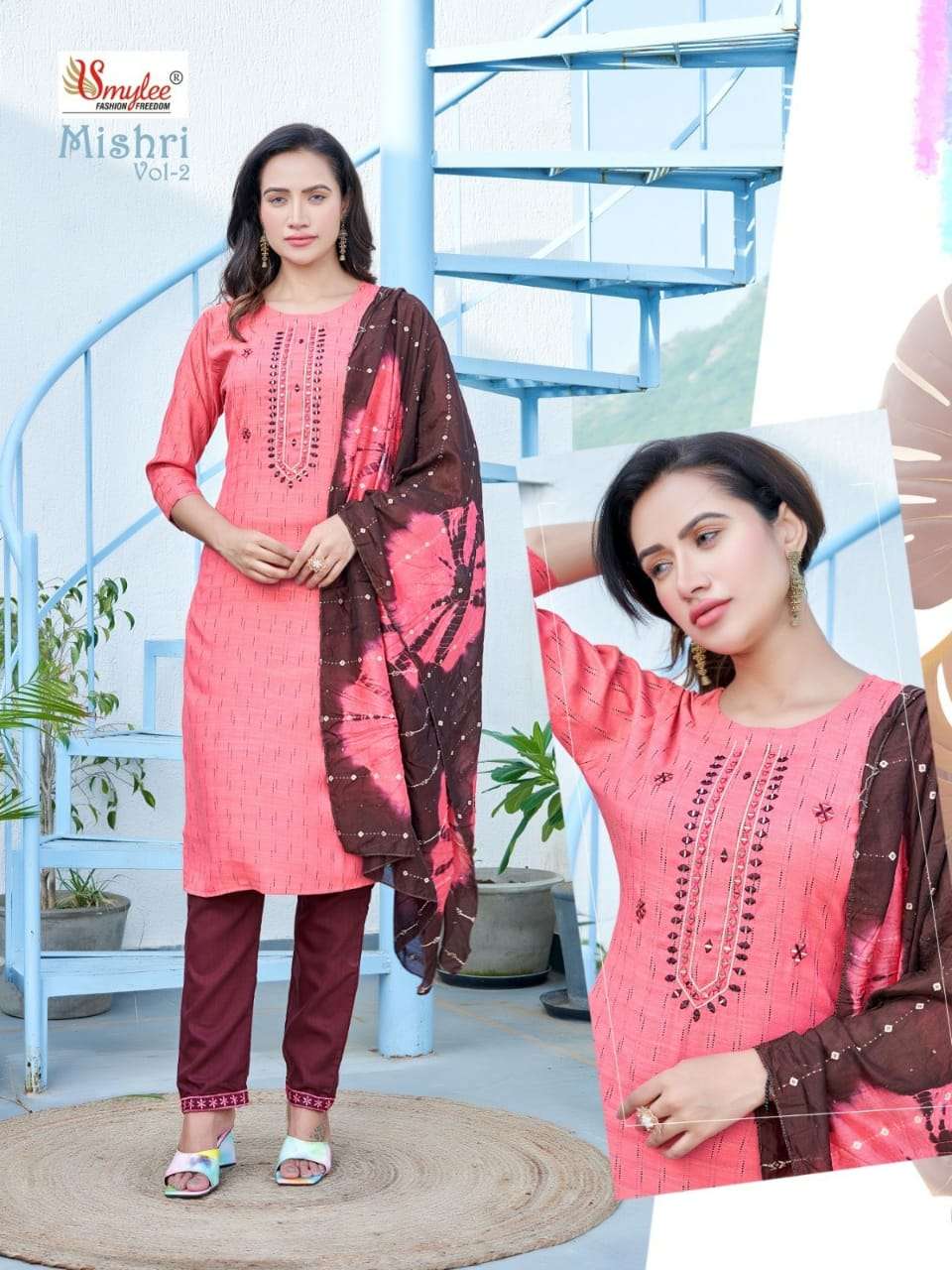 mishri vol 2 by smylee readymade 3pcs set fancy straight kurti with pant and chanderi dupatta