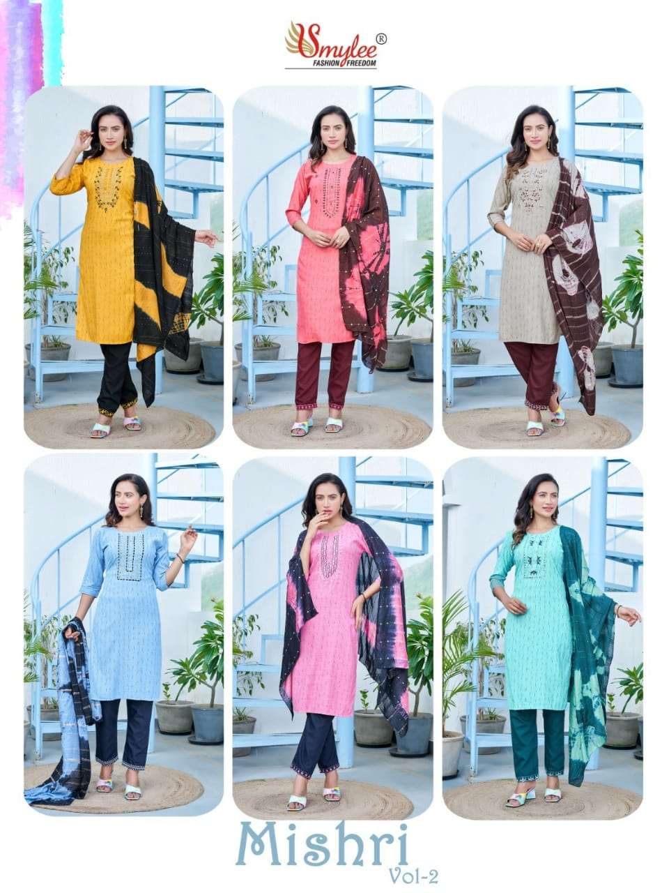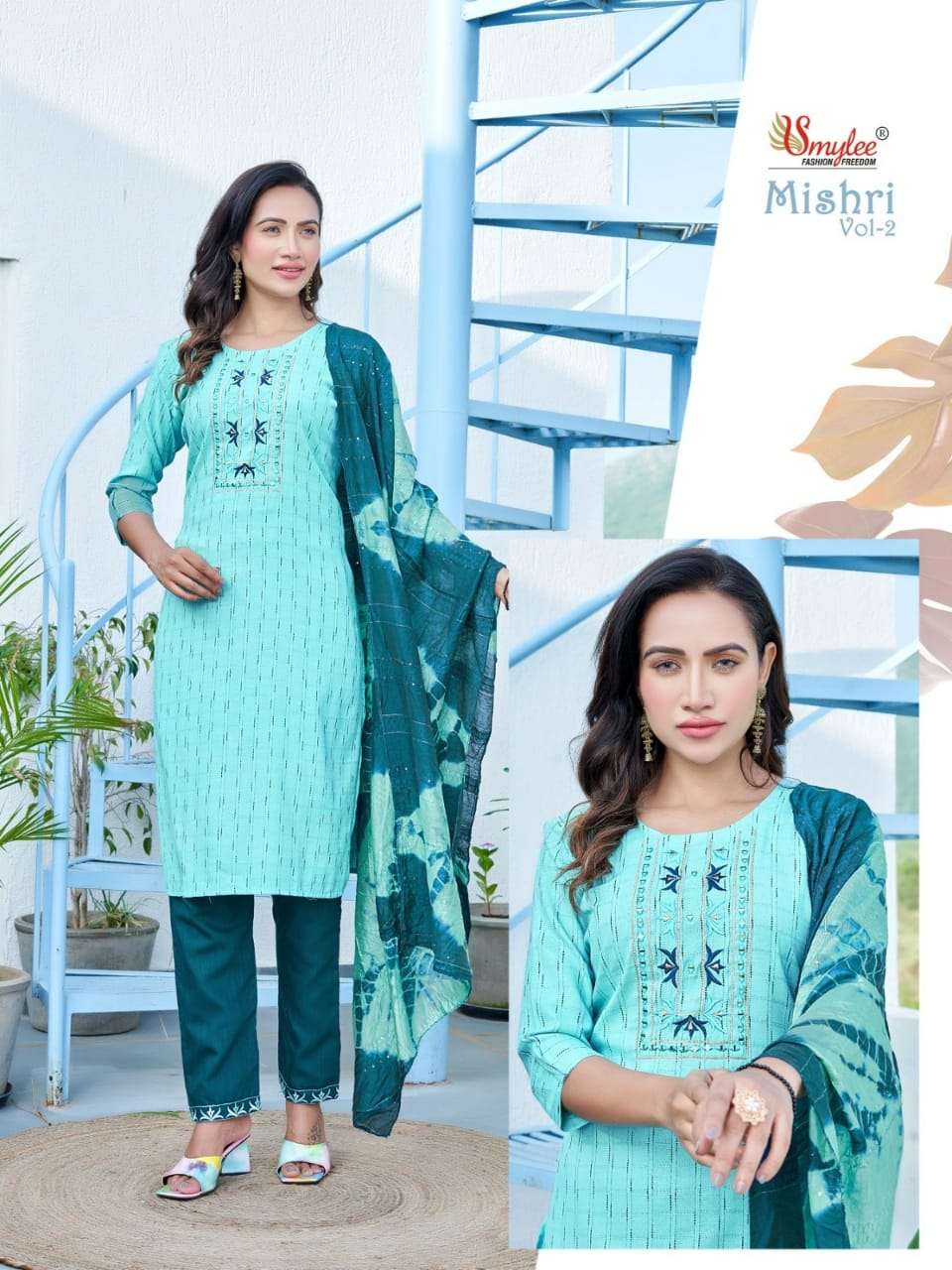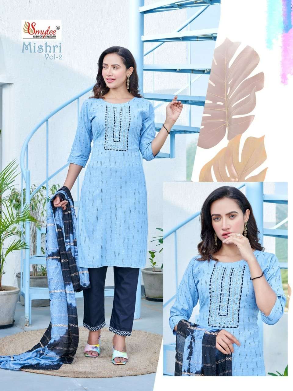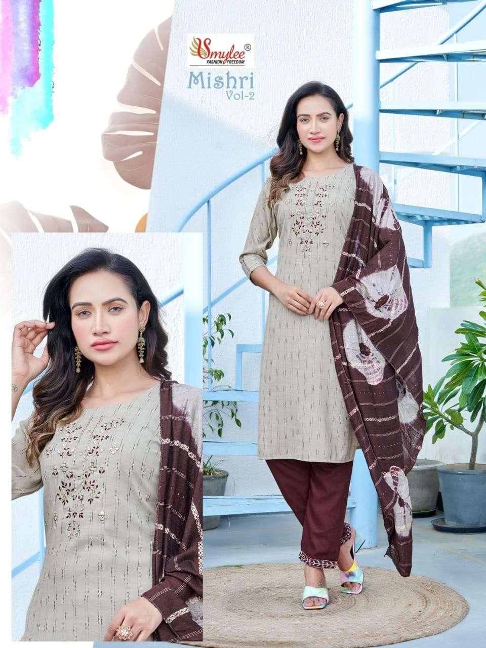 mishri vol 2 by smylee readymade 3pcs set fancy straight kurti with pant and chanderi dupatta