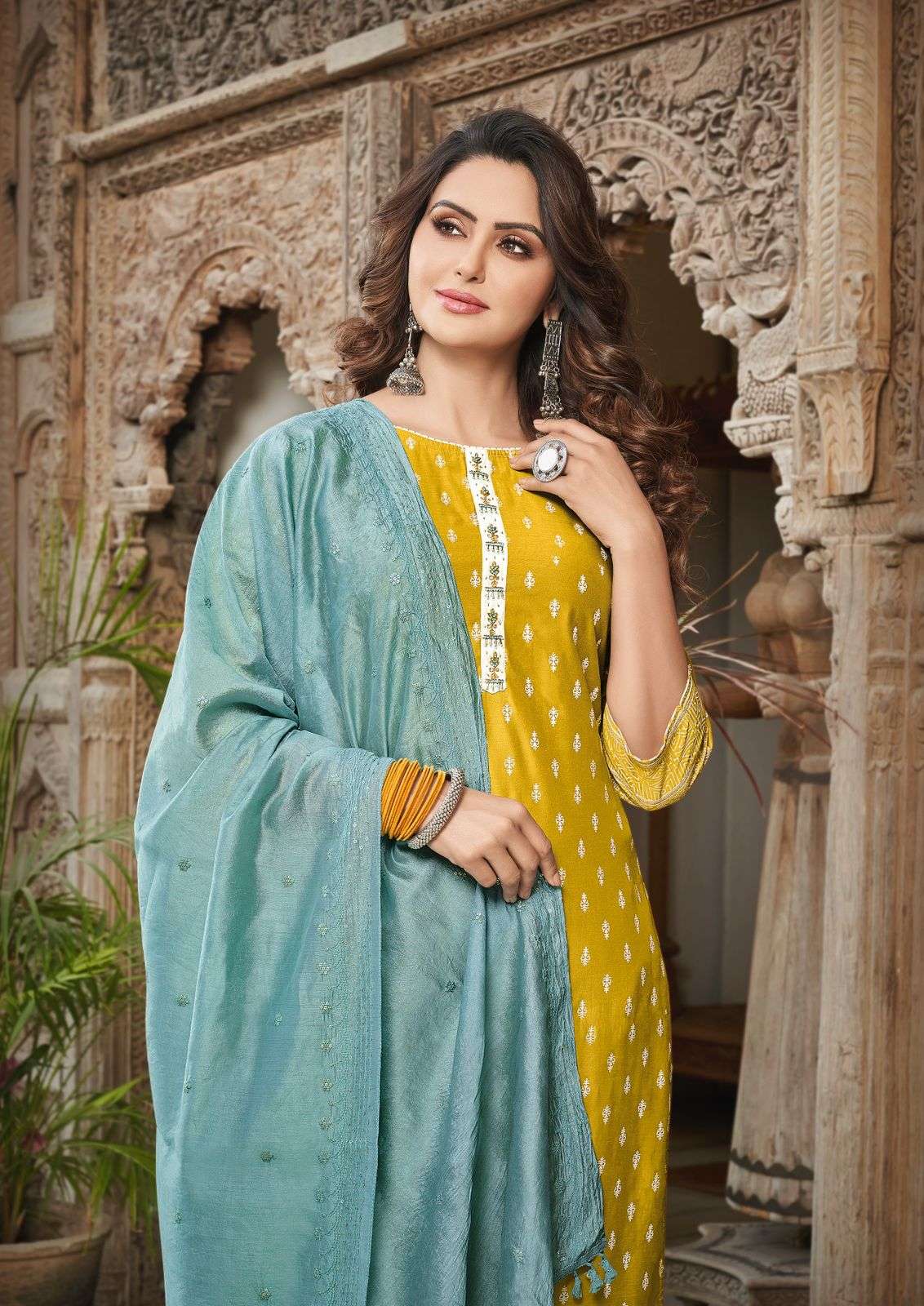 Brand Name : MITTOO Catalog : Blue Berry No of Design : 4 Fabric Details Pant : Mono Viscose Dupatta : Chanderi Viscose Size : S(36), M(38), L(40), XL(42), XXL(44), 3XL(46) Rate : 1020/ Pic + GST Dispatch with in 3-4 days |