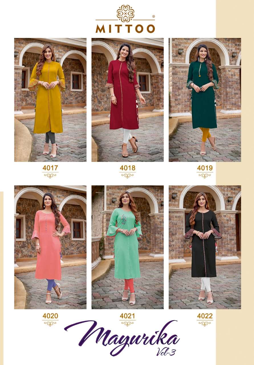 Mittoo Mayurika Vol 3 Rayon Slub Fancy Kurtis