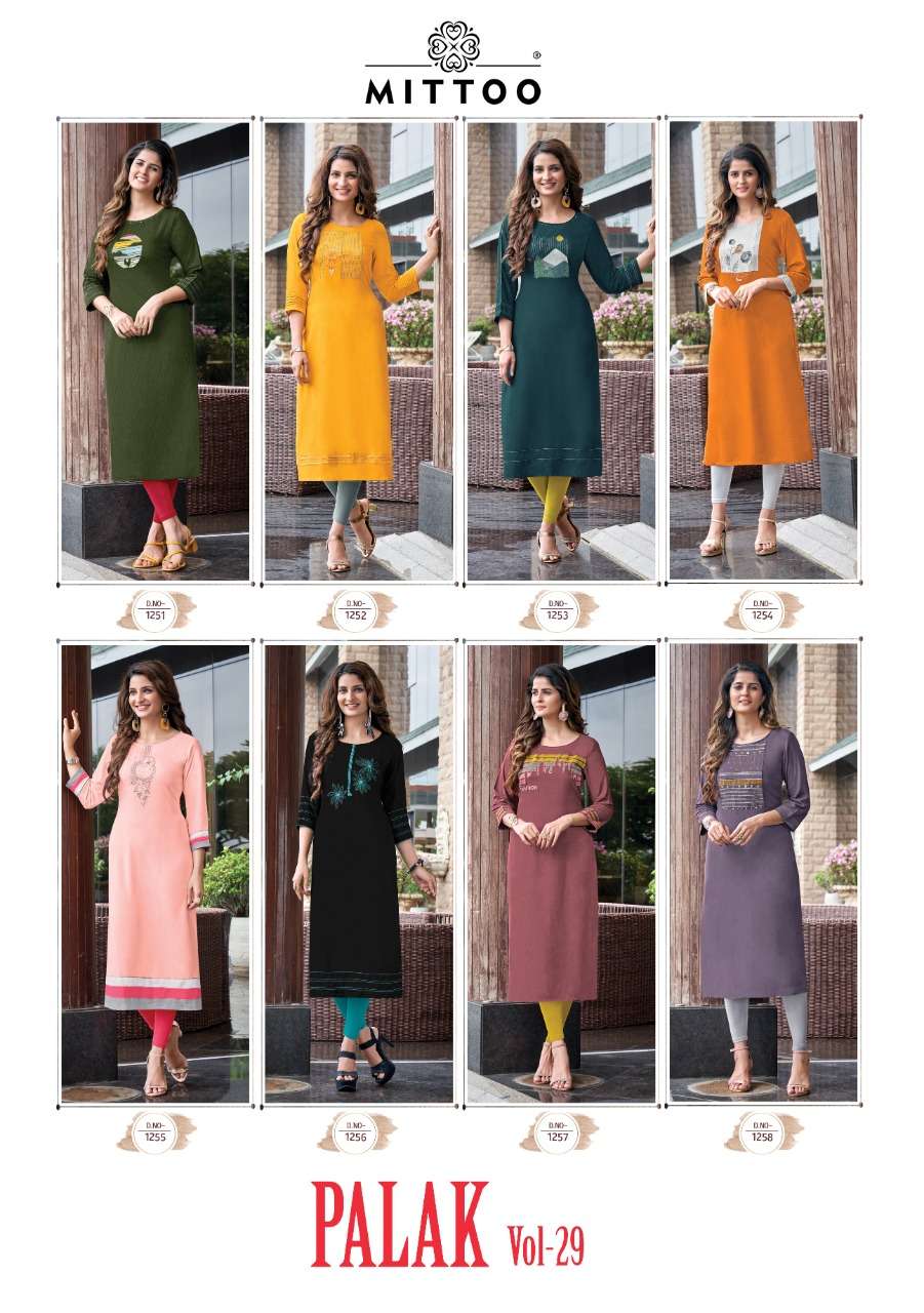 mittoo palak vol 29 rayon readymade simple kurtis exports