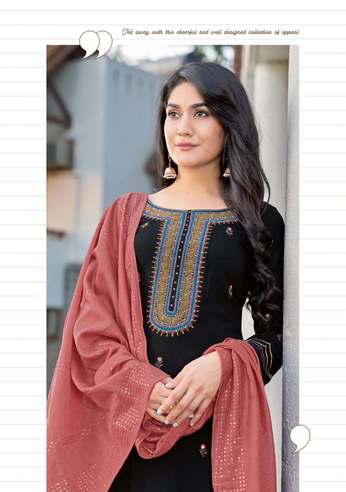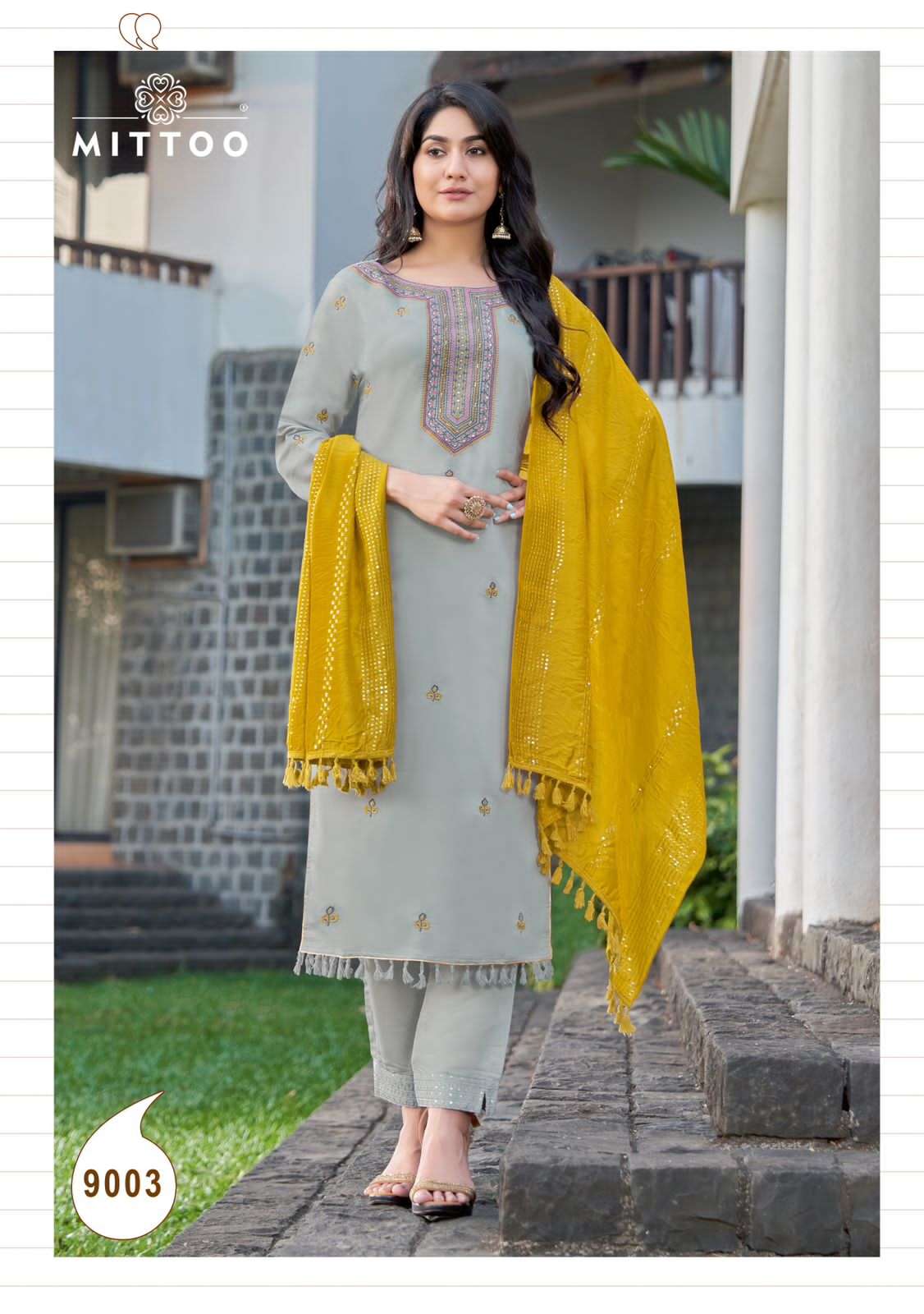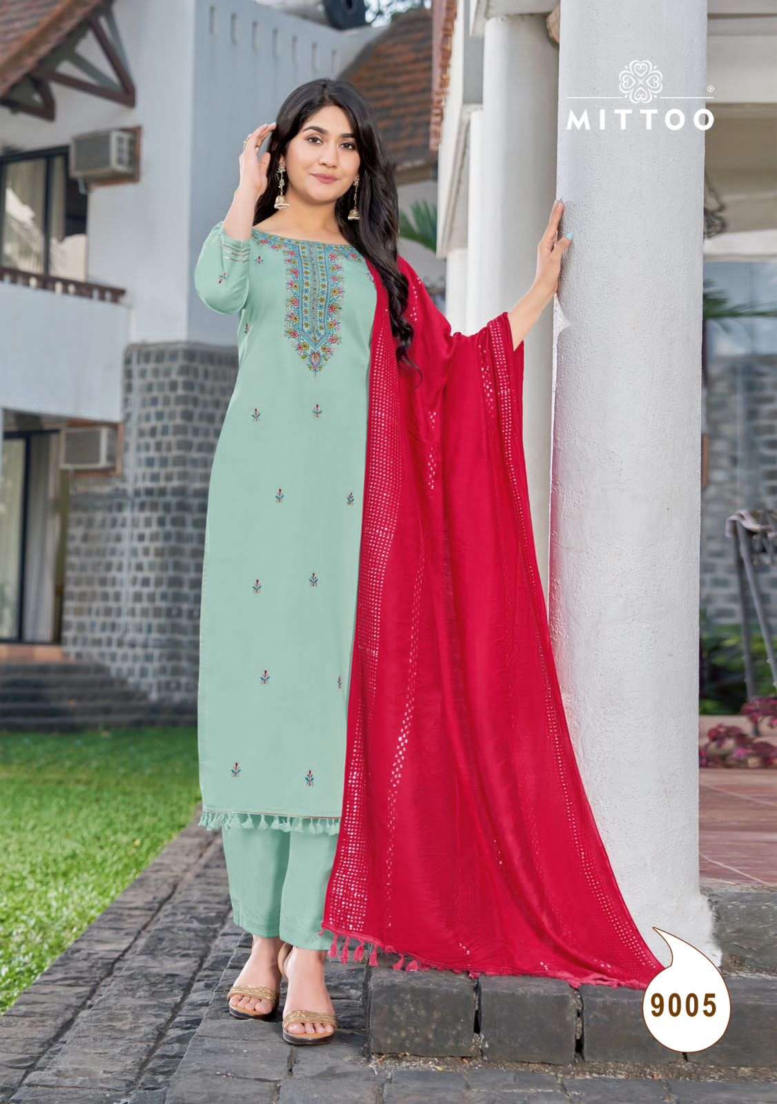 mittoo present mosam readymade 3pcs suit fancy viscose kurti pant and chanderi dupatta