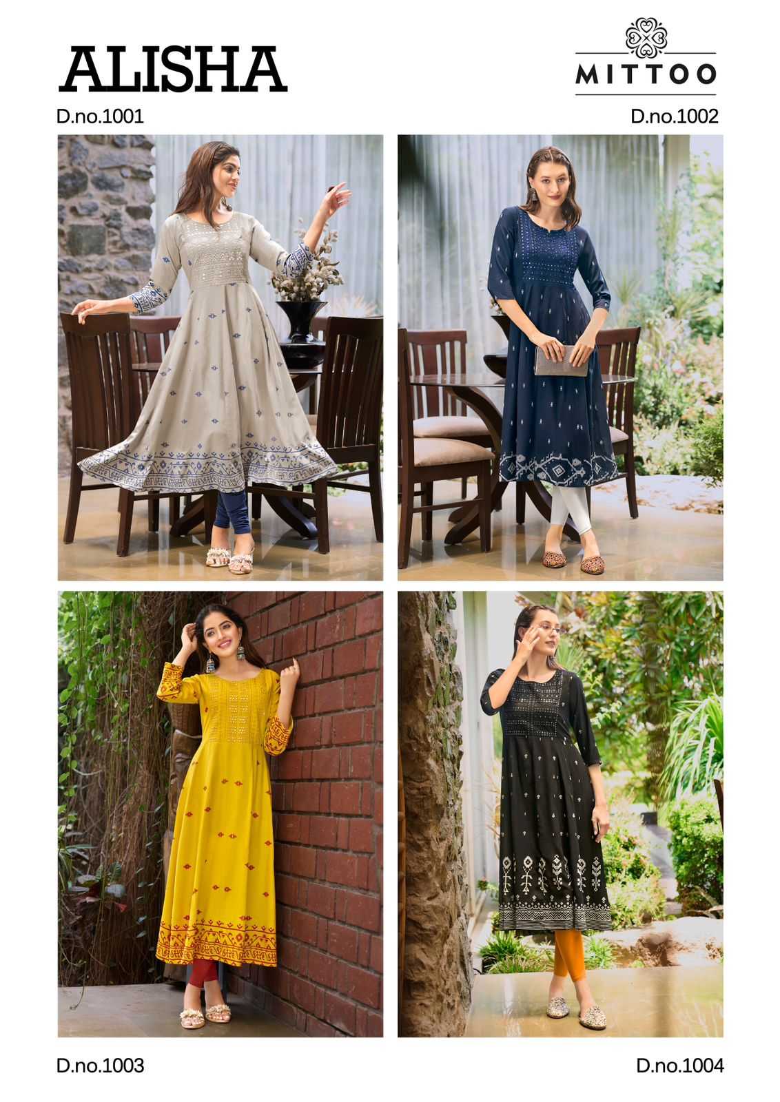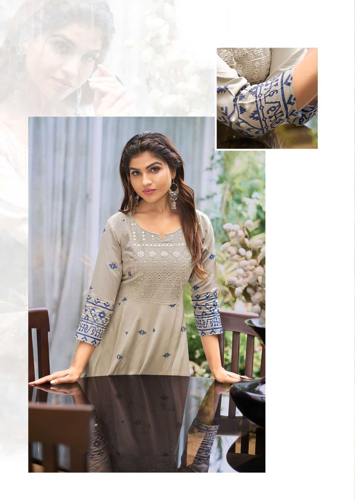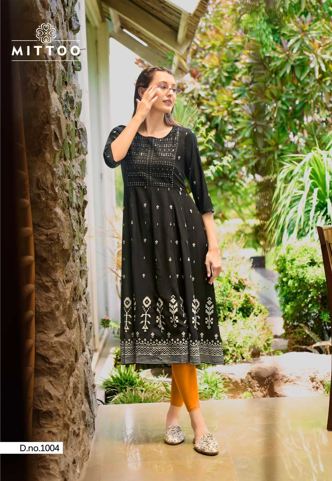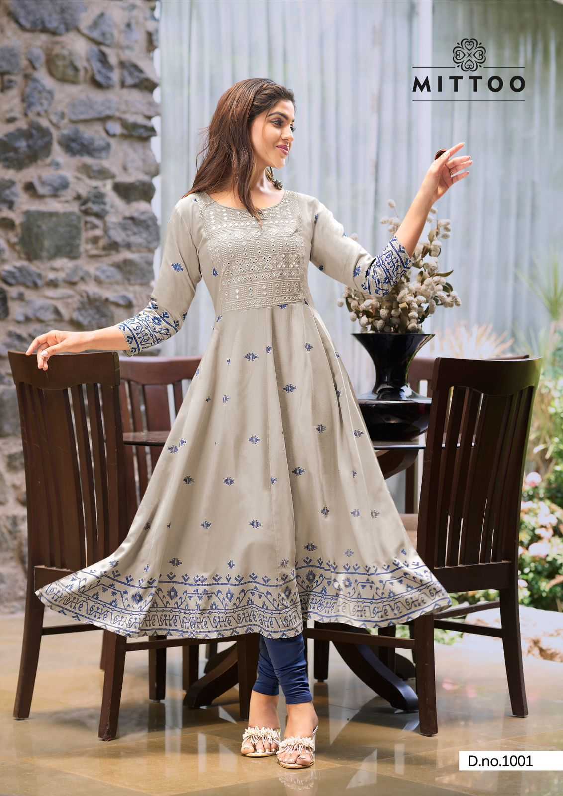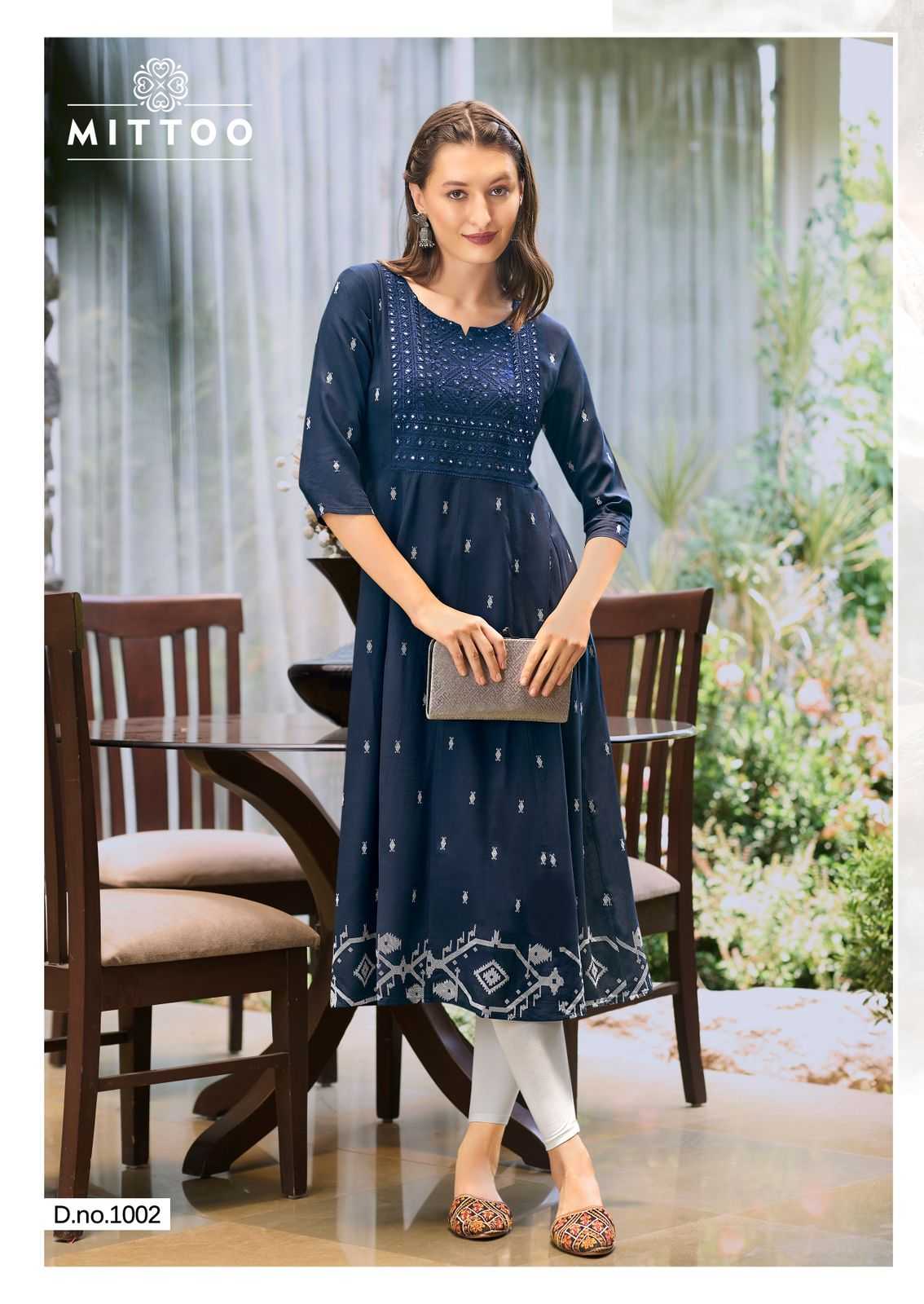 mittoo presents alisha classy look rayon print full stitch long kurti