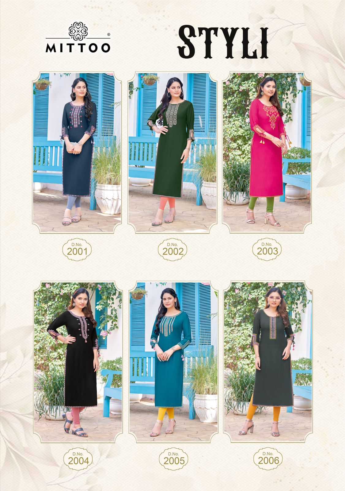 Brand : MITTOO Catalog : STYLI Design : 6 Rate : 495 /- per pcs + 5% GST Set to set |