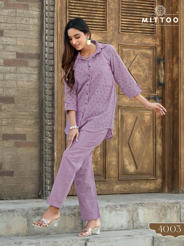 mittoo veena shifli cotton attractive look full stitch co-or set online