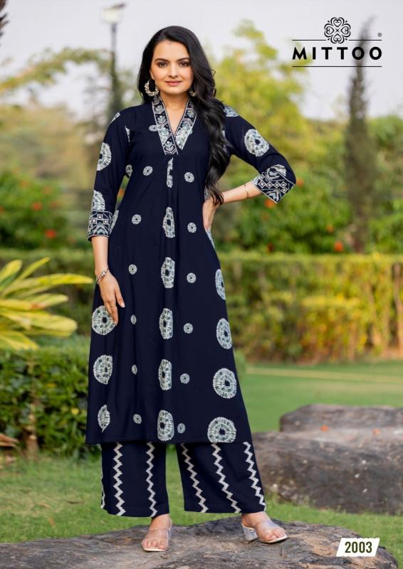 mittoo vitara rayon print readymade daily wear kurti with plazzo
