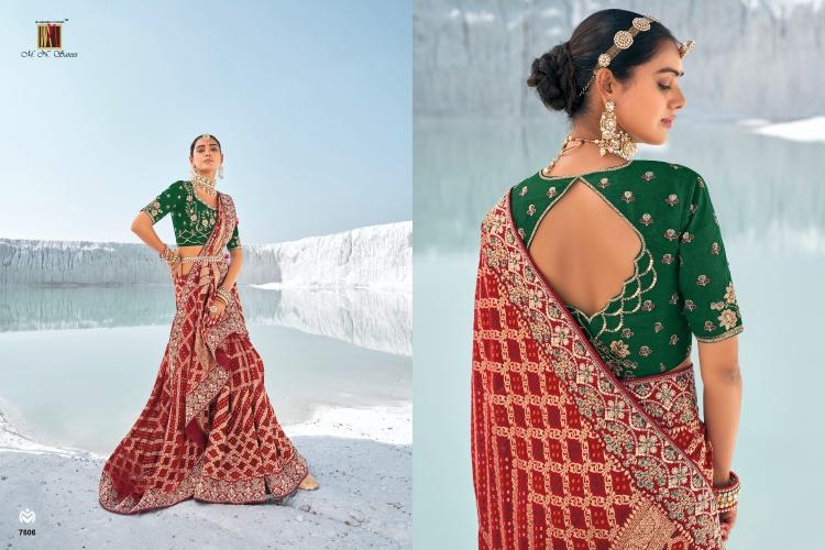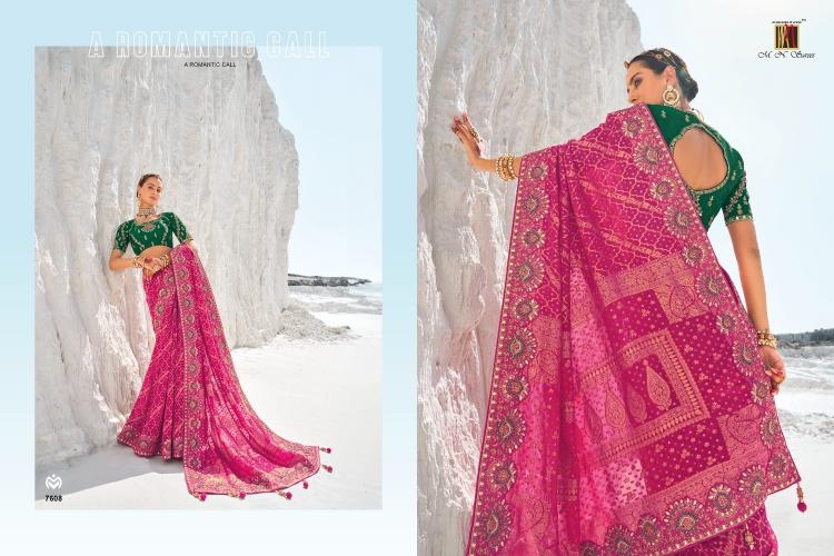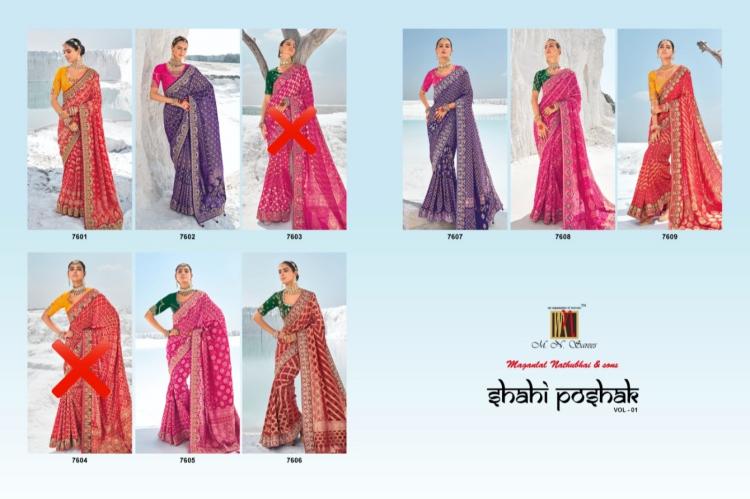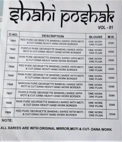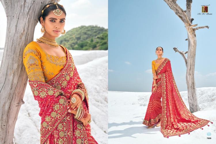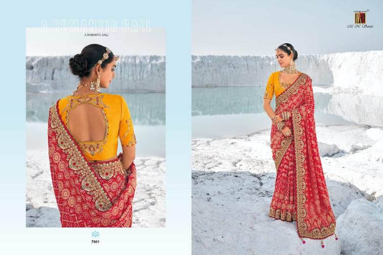mn launch shahi poshak vol 1 7601-7609 georgette bandhej party wear sarees