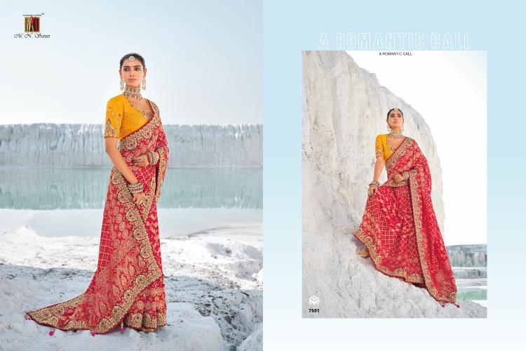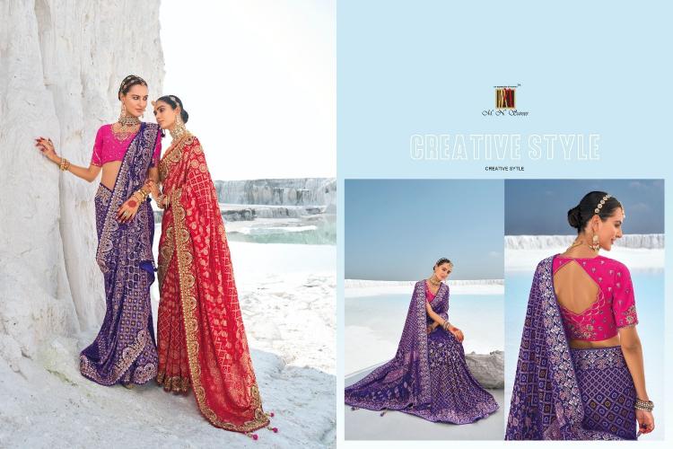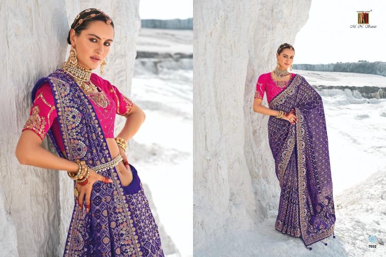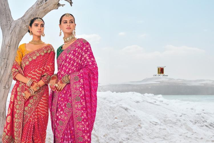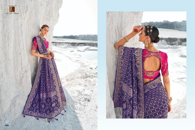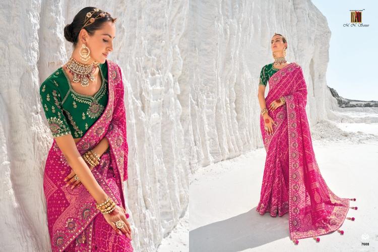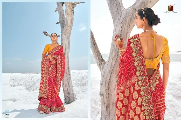 Tradition meets artistry in this exquisite Bandhej saree – hand-dyed to perfection with intricate knots, capturing the essence of timeless heritage. A blend of vibrant hues and cultural craftsmanship, making every drape a masterpiece. Brand Name : M.N Catalogue Name: Shahi Poshak VOL 1 Series : 7601 To 7609 Fabric : List Attached Price : List Attached +5%GST Occasion : Wedding Wear, Festive Wear |