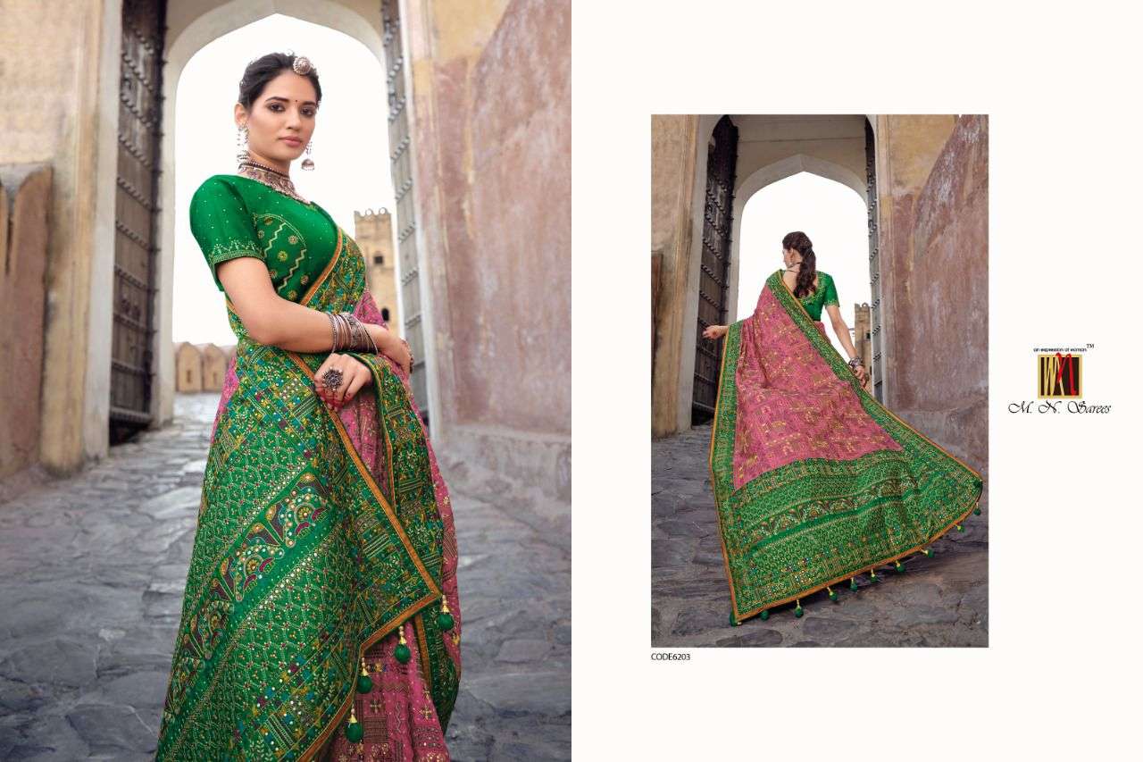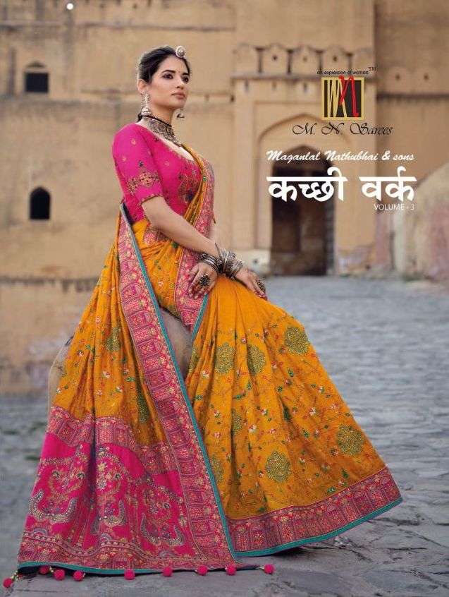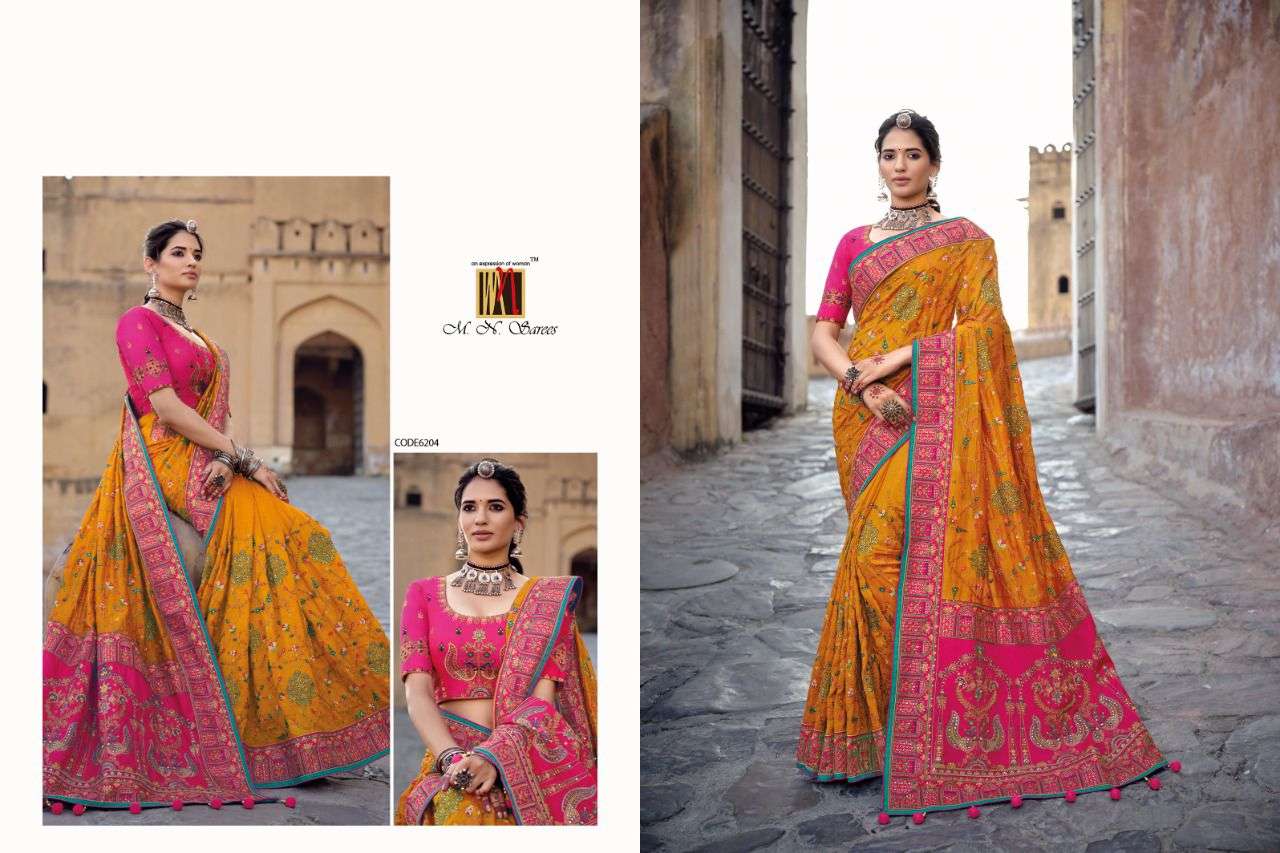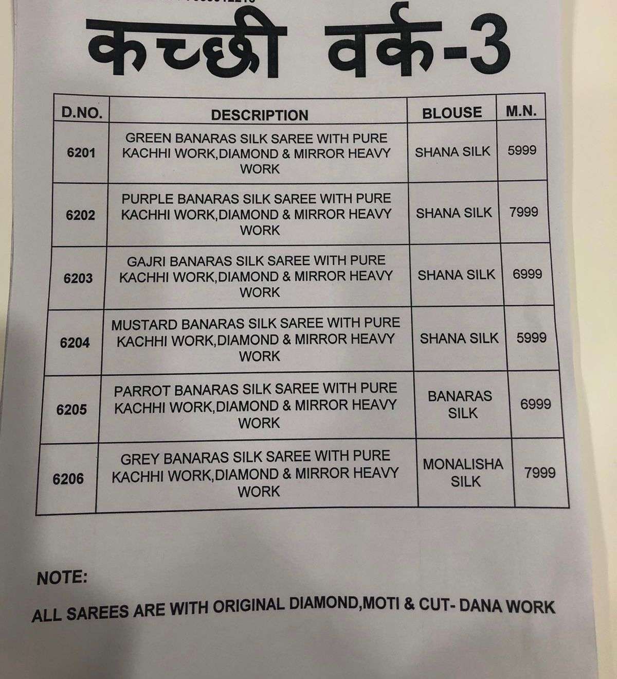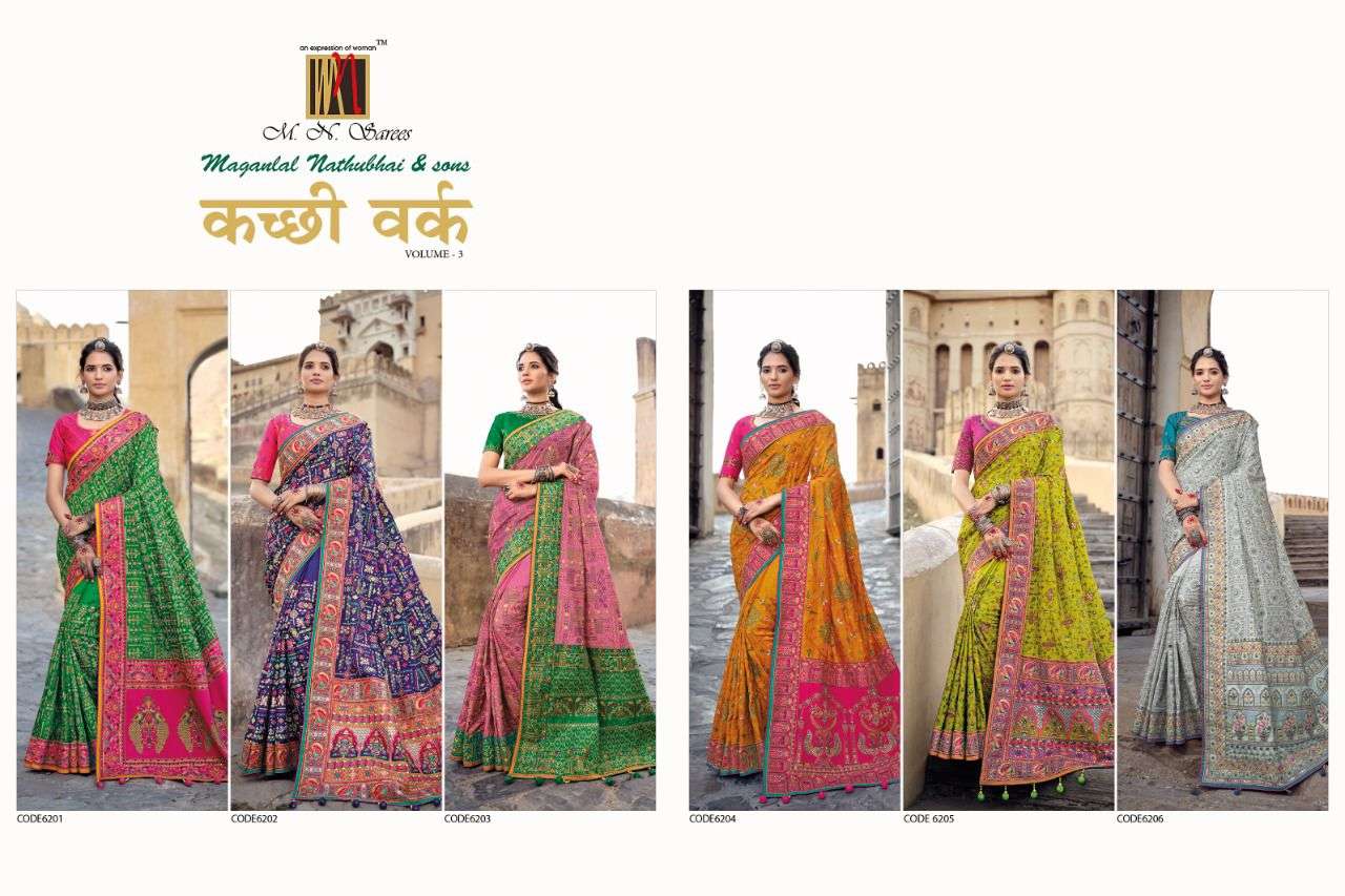 mn saree kacchi work vol 3 6201-6206 series banaras silk saree for wedding