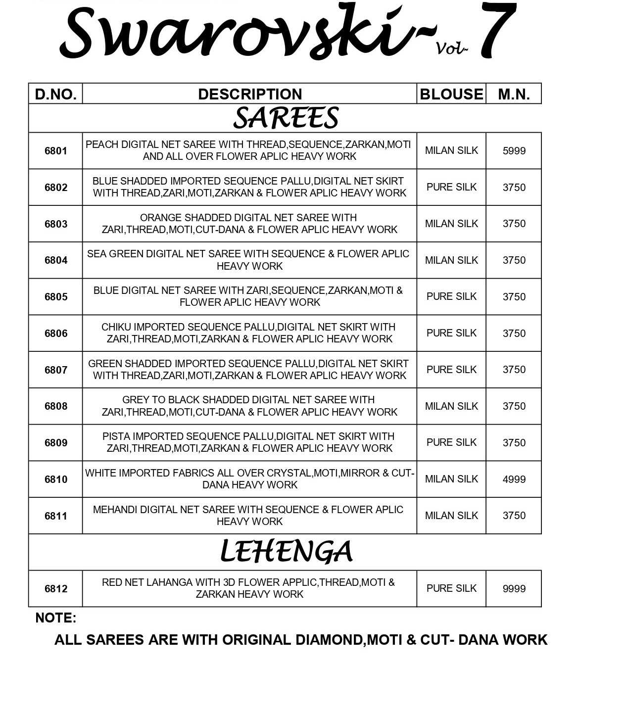 OUR NEW SAREE COLLECTION â™» BRAND : MN CATALOG : SWAROVSKI VOL - 7 (6800 SERIES)