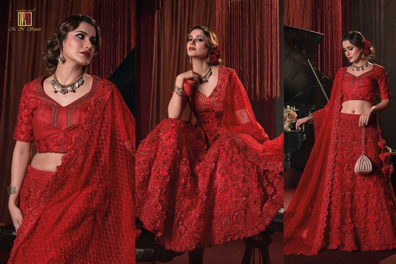mn saree launch swarovski vol 7 designer wedding sarees and beautiful red lehenga catalog