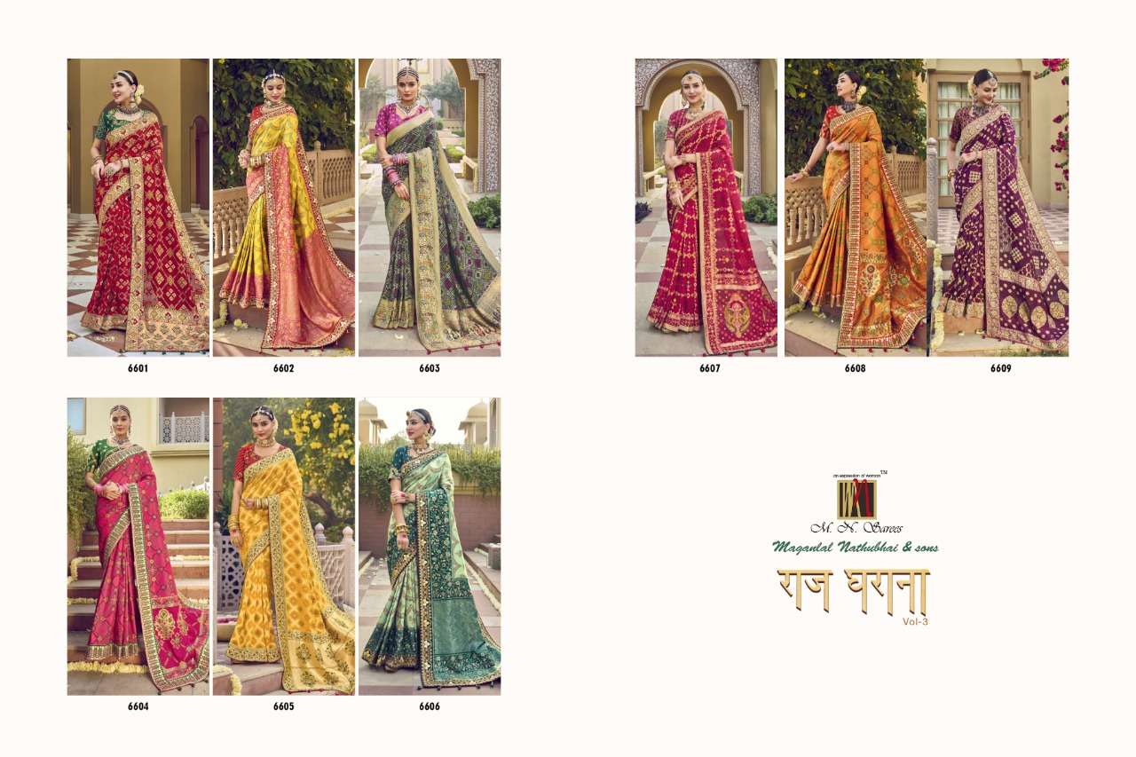mn saree surat raj gharana vol 3 6601-6609 heavy patola latest design saris wholesale