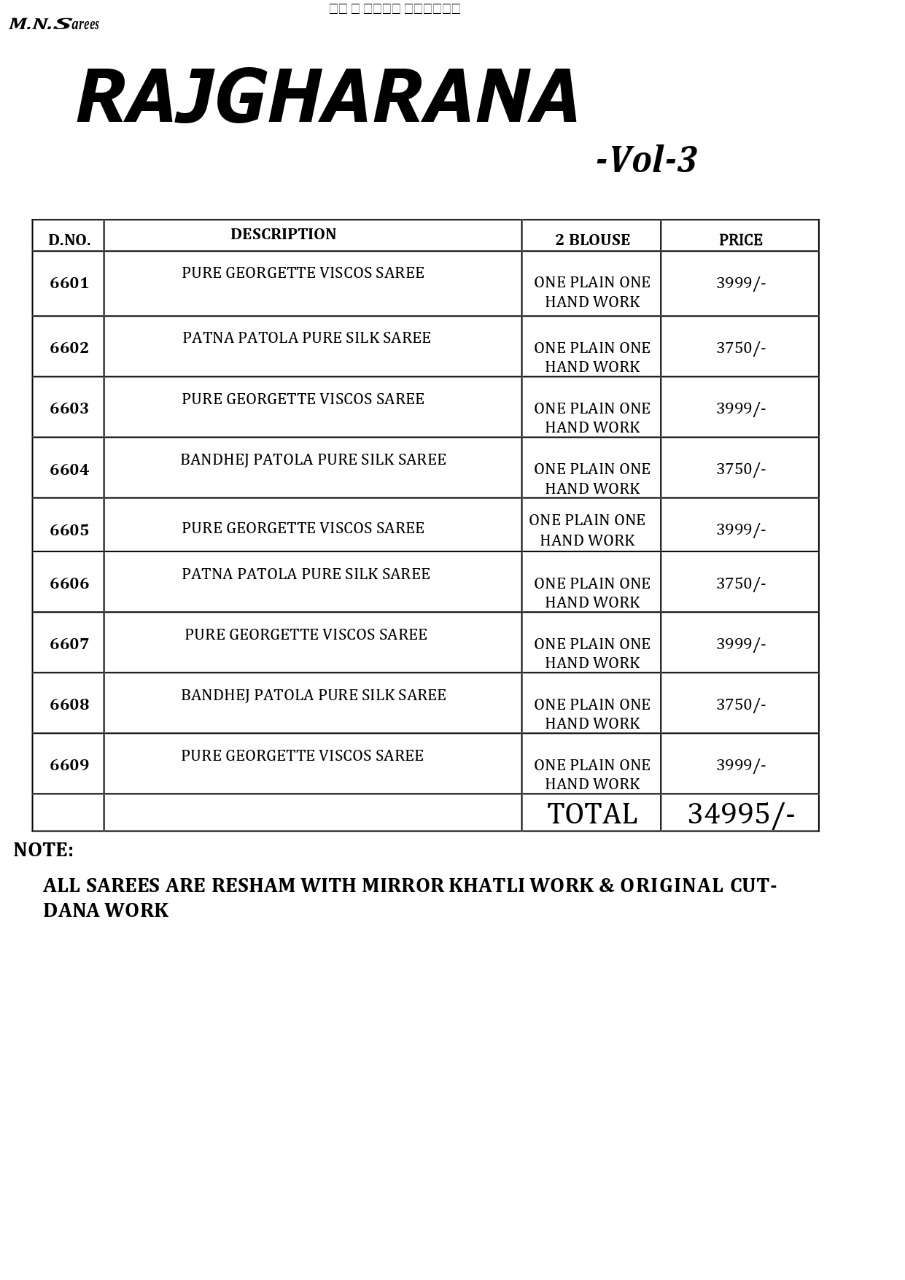♻ OUR NEW SAREE COLLECTION ♻️ BRAND : MN CATALOG : RAJGHARANA VOL- 3 (6600 SERIES) PRICE :- ATTACHED FABRIC -: ATTACHED READY DISPATCH |