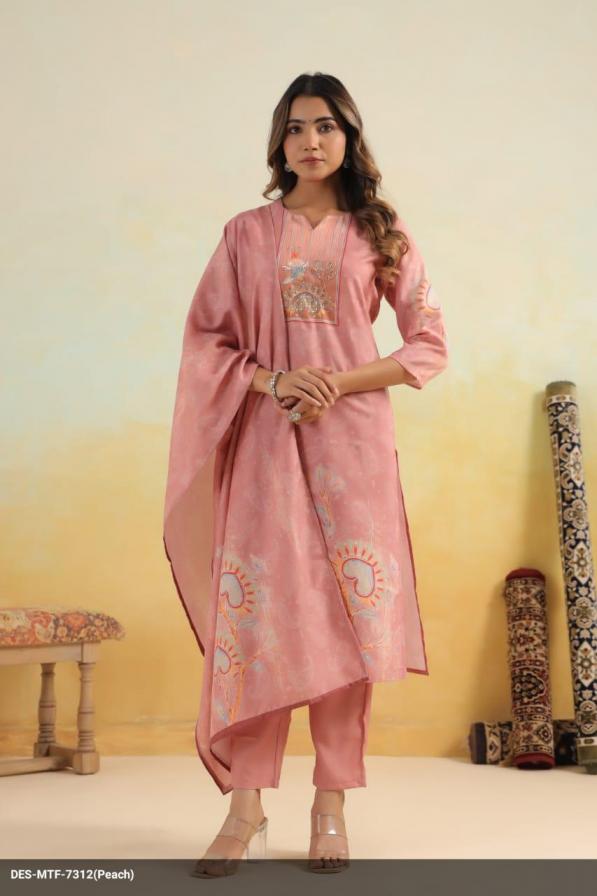 modern 7312 by cotton full stitched combo designer kurti pant with dupatta