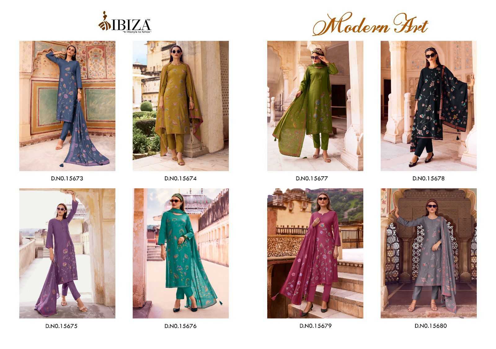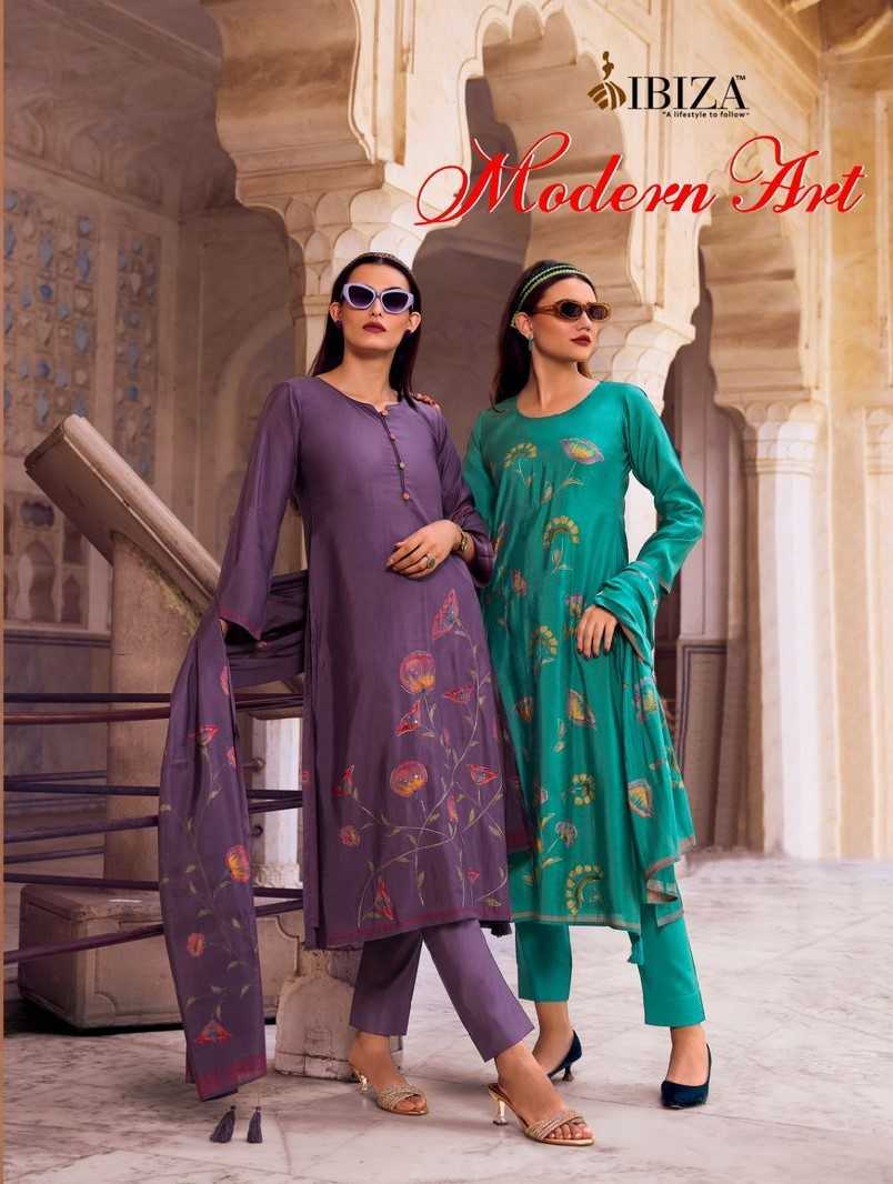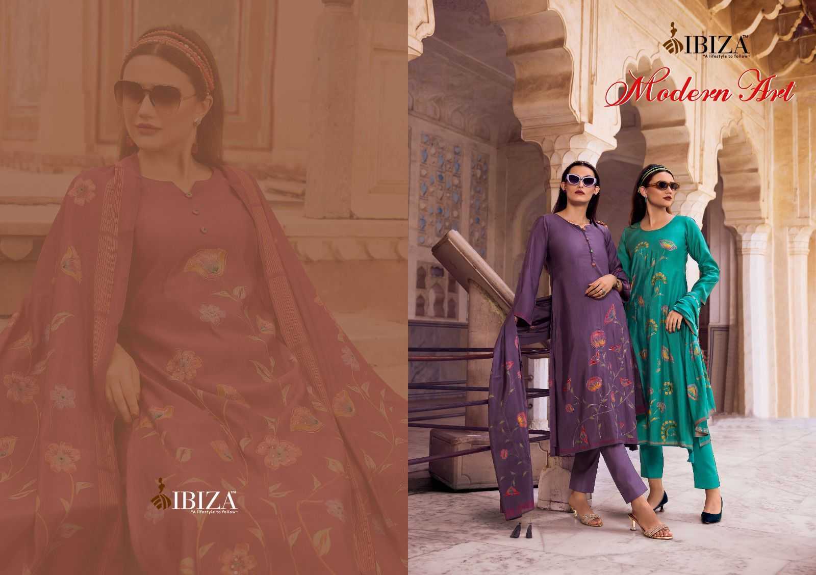 modern art by ibiza handprinted viscose ladies suits collection