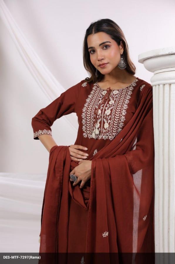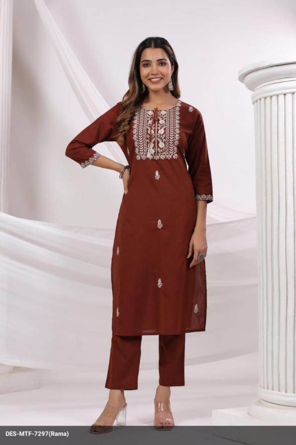 modern cotton mul mul readymade ethnic style combo suit for womens