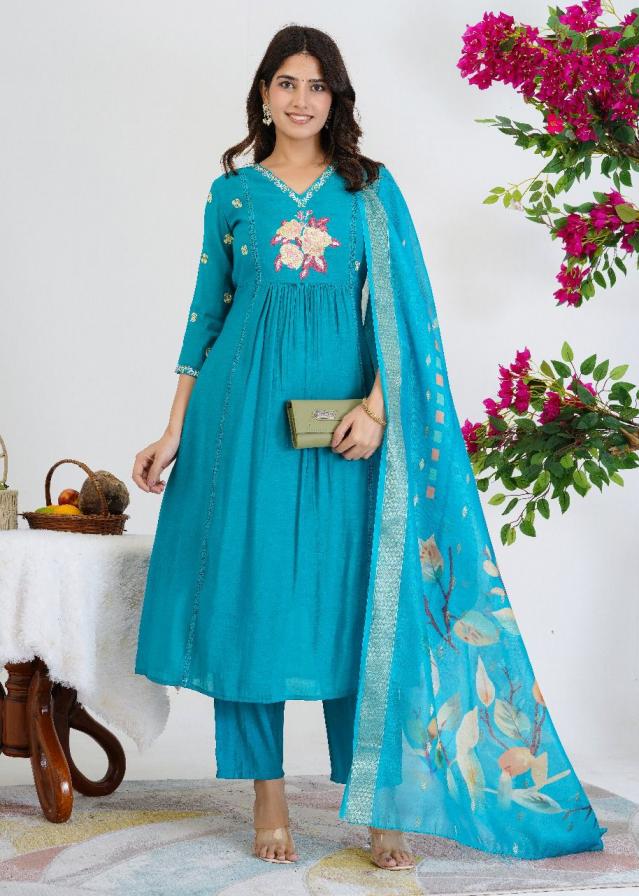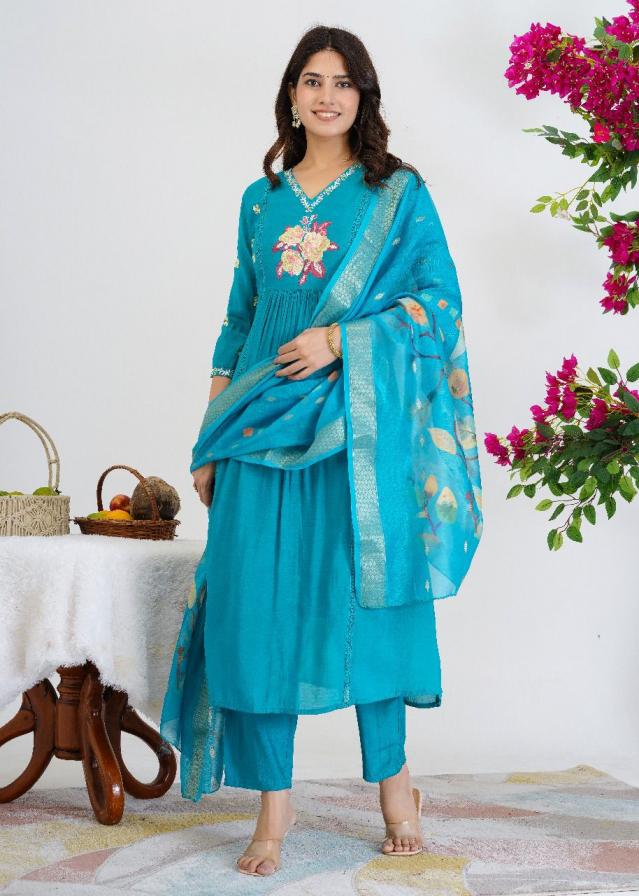 modern pretty look full stitch mul chanderi combo suits