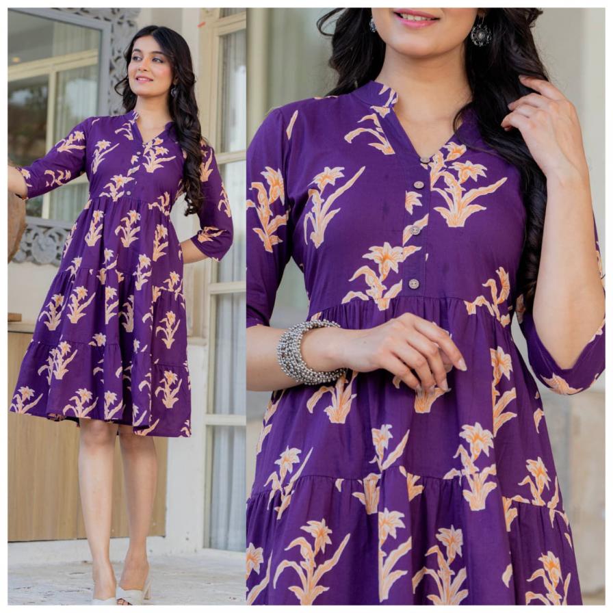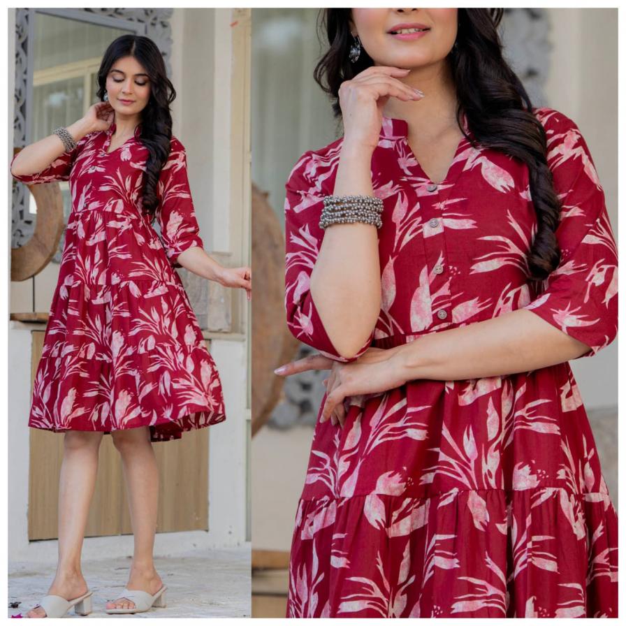 BOOK CATALOGUE MODERN RUFFLE MIDI DRESS ON KRISHNA CREATION. CALL ON +91-8866778727.