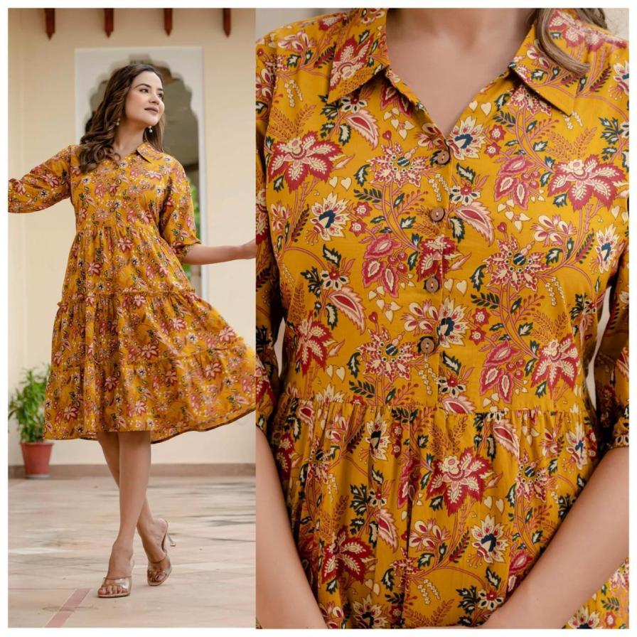 modern ruffle cotton fully stitch midi one pieces combo dress online