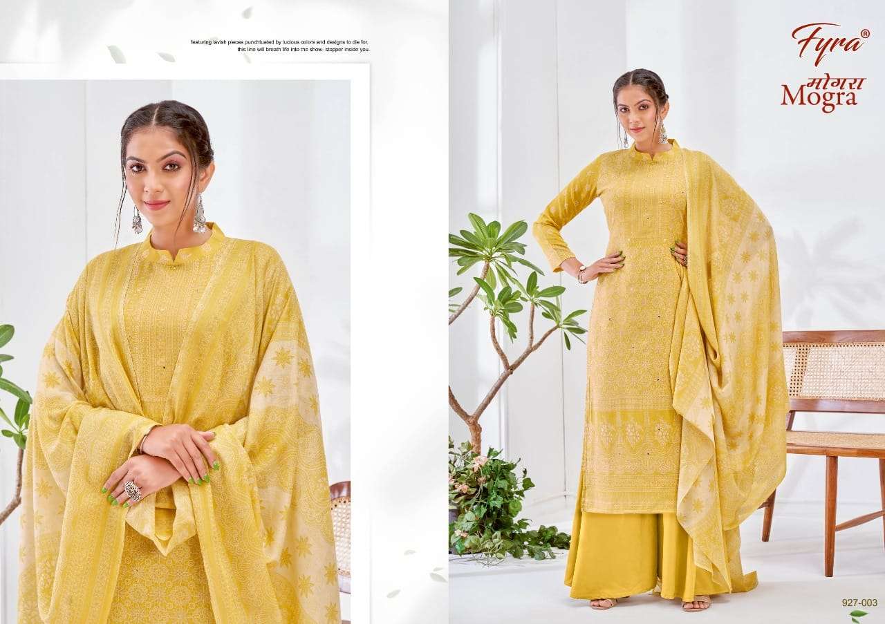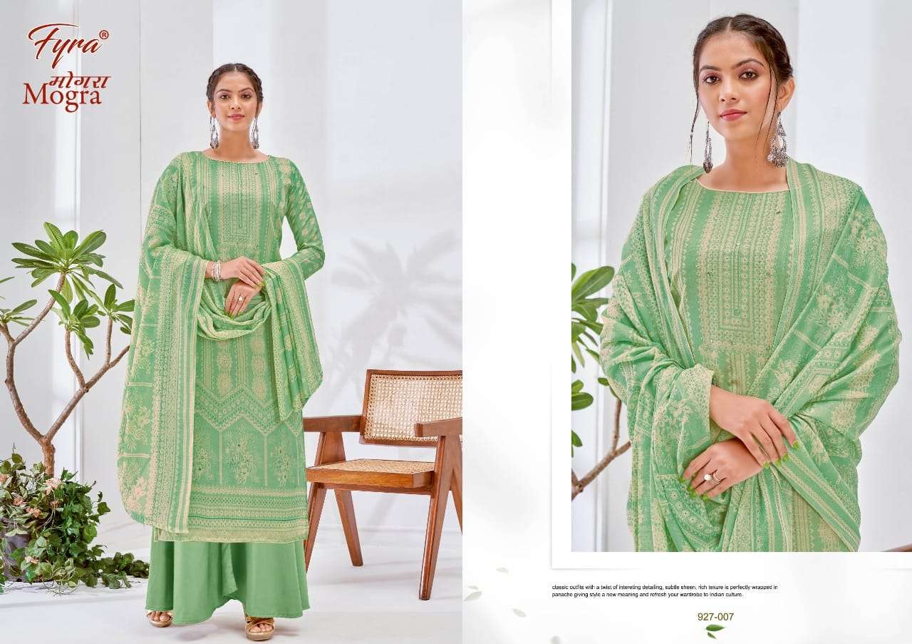 👗 Fyra Designing Hub by Alok Suit - Make in India 👗 Launches its New Catalog: MOGRA Fabric Details: 👖 BOTTOM: Pure Soft Cotton Solid 🧣 DUPPATTA: Pure Cotton Mal Mal Print Dup Rate: 4️⃣1️⃣0️⃣ + 5️⃣% GST 8️⃣ pcs |