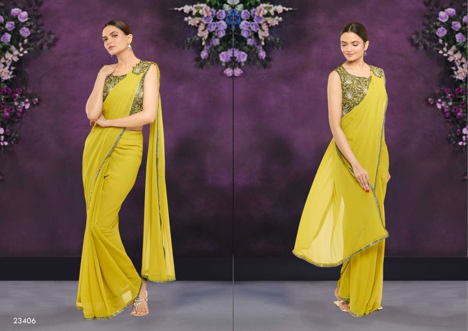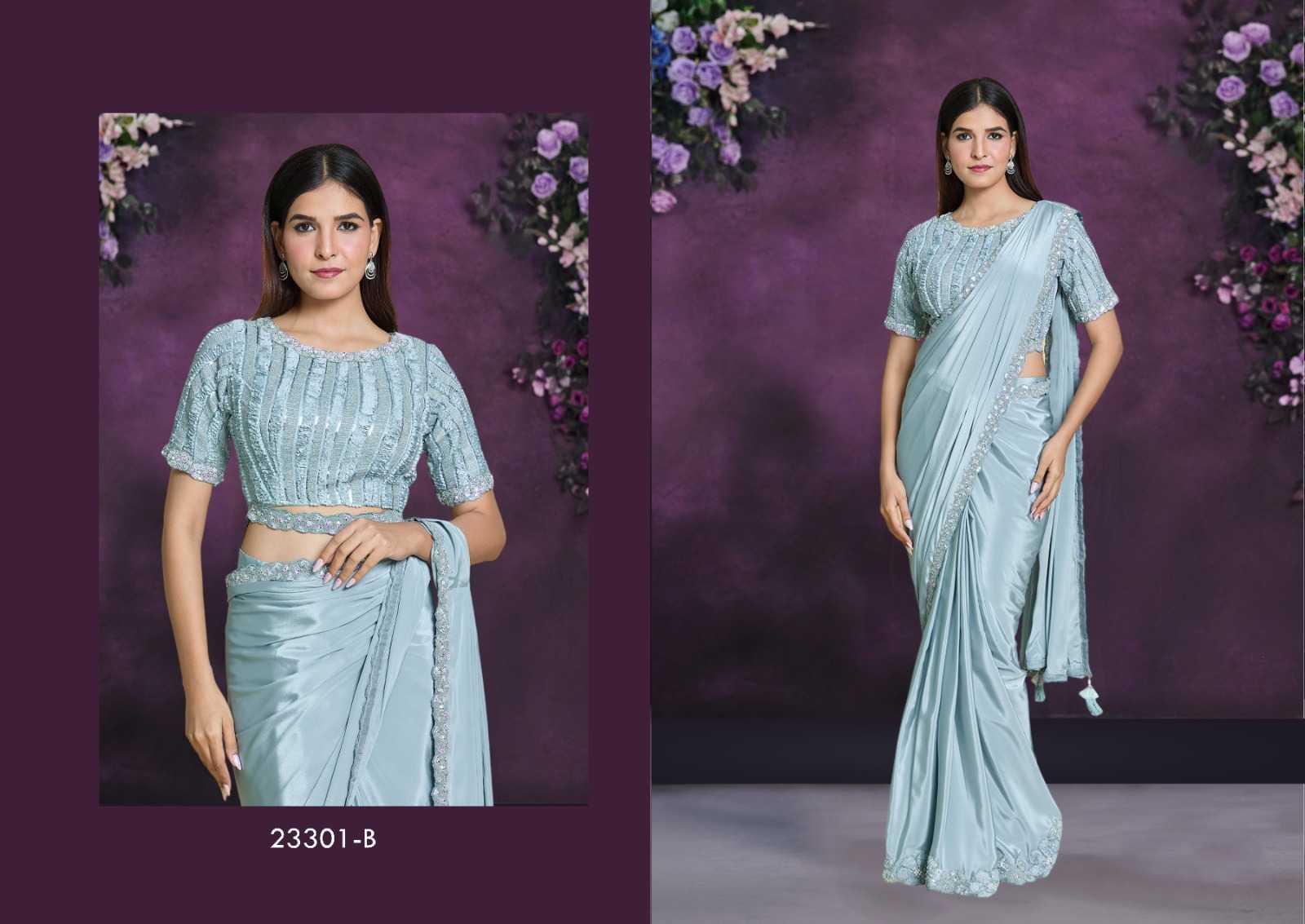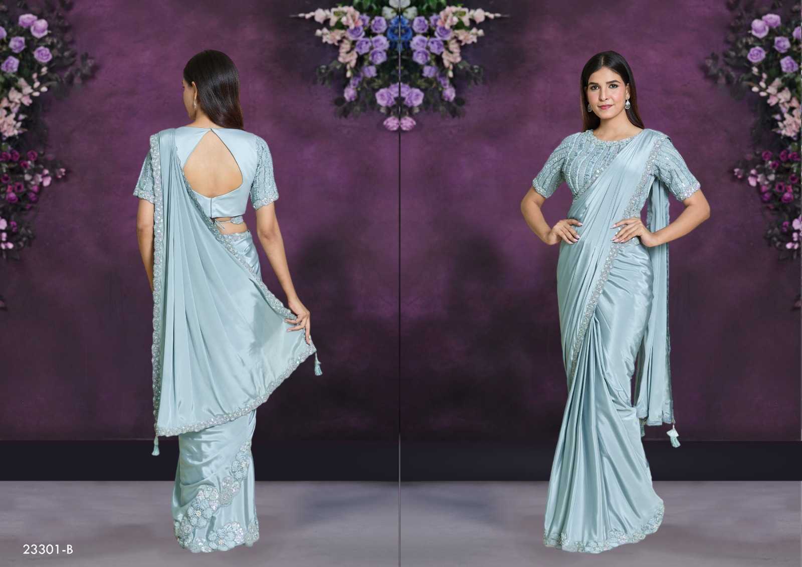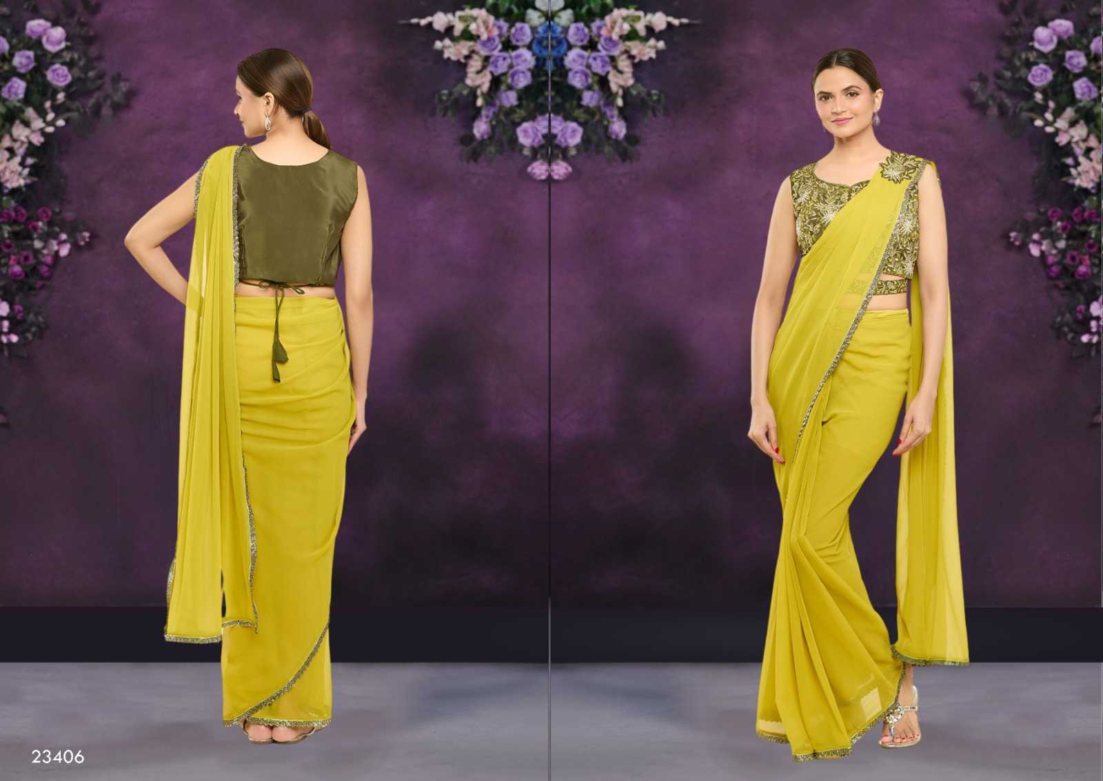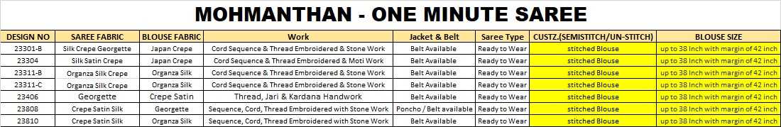♻ OUR NEW DESIGNER READY TO WEAR DESIGNER SAREE COLLECTION ♻️ BRAND NAME : MAHOTSAV CATALOG : "MOH-MANTHAN-ONE MINUTE SAREE PRICE :- FABRIC -: ATTACHED SAREE TYPE : READY TO WEAR-ONE MINUTE SAREE BLOUSE TYPE : STITCHED BLOUSE SIZE : up to 38 Inch with margin of 42 inch |