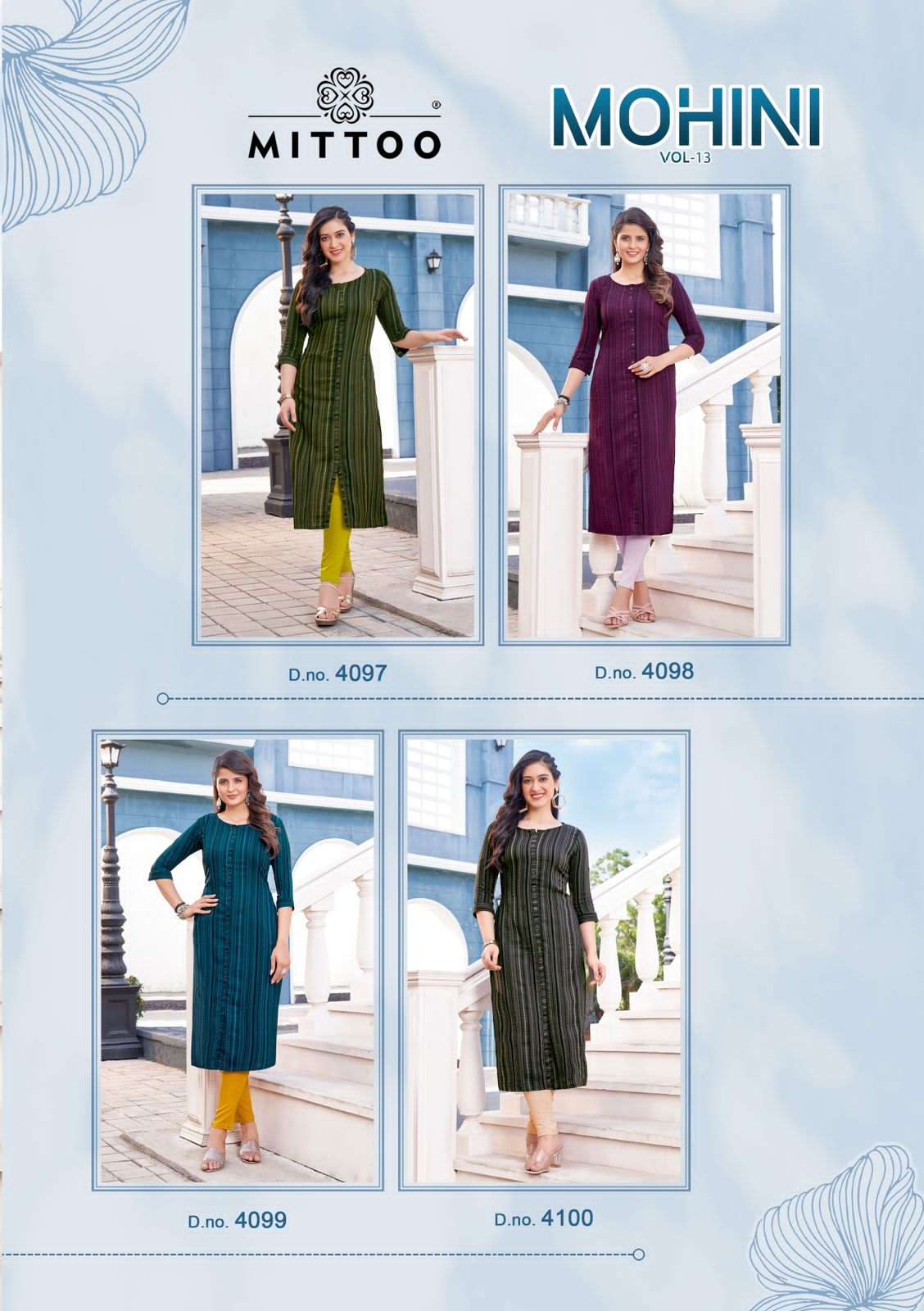 mohini vol 13 by mittoo weaving strips kurti with pant set wholesaler