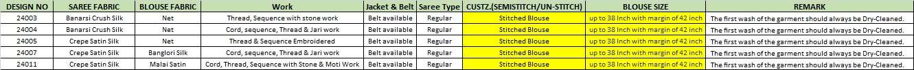 | Note | Stitching available on customer Requirment For Sarees , Salwar Kameez, Lehengha.(i.e M,L,XL,XXL). |
