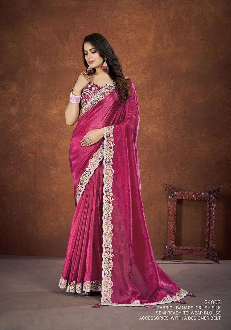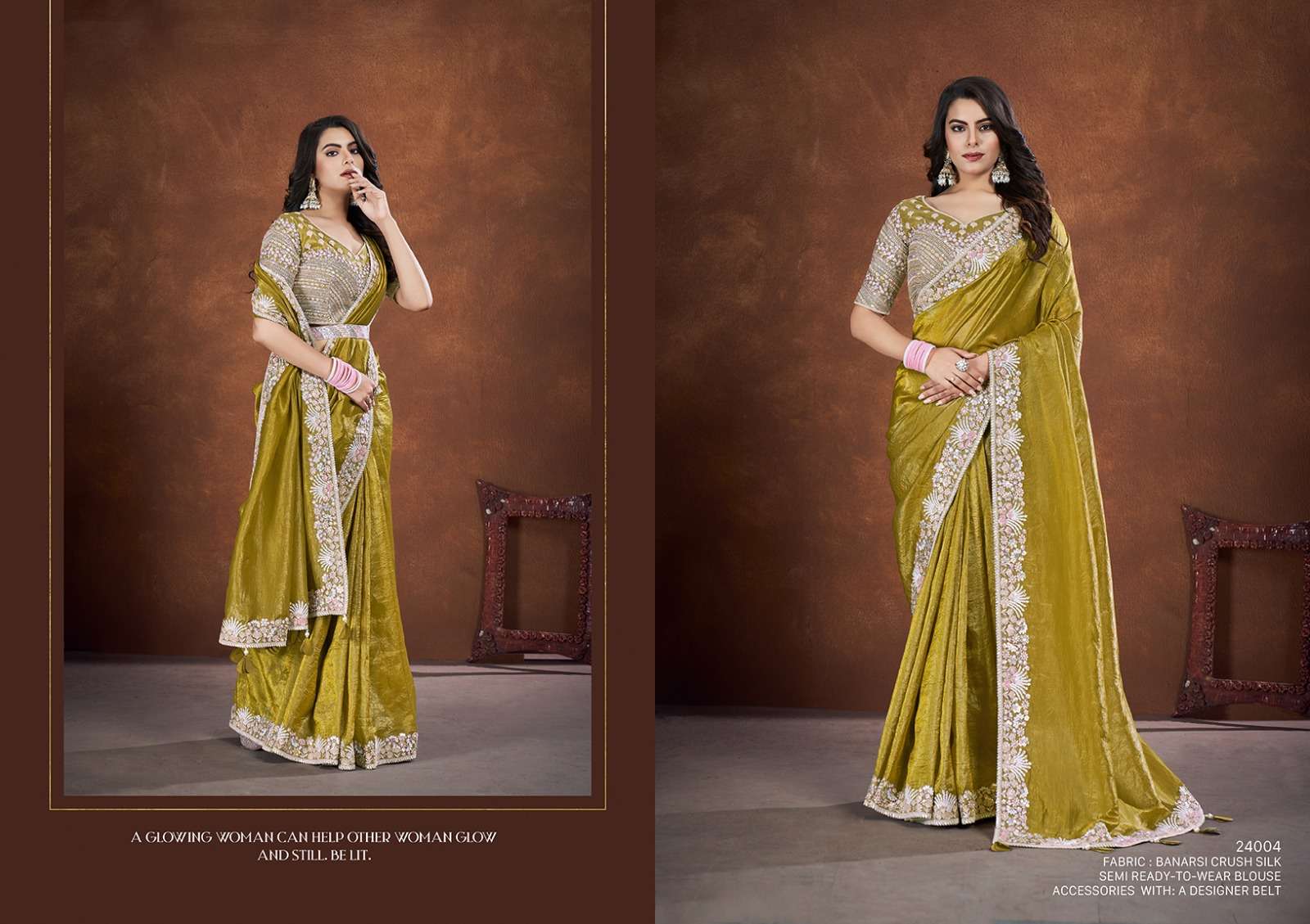 ♻ OUR NEW PARTY WEAR DESIGNER SAREE COLLECTION ♻️ BRAND NAME : MAHOTSAV CATALOG : "MOHMANTHAN " 24000 SERIES "SAHA SAKI" PRICE :- FABRIC -: ATTACHED BLOUSE TYPE : STITCHED BLOUSE SIZE : UP TO 38 INCH WITH MARGIN OF 02 INCH |