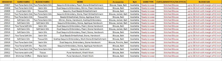 | Note | Stitching available on customer Requirment For Sarees , Salwar Kameez, Lehengha.(i.e M,L,XL,XXL). |