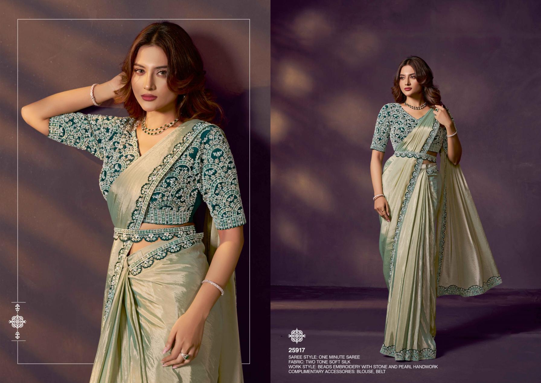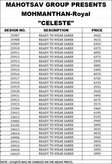 ♻ OUR NEW PARTY WEAR ONE MINUTE DESIGNER SAREE COLLECTION ♻️ BRAND NAME : MAHOTSAV CATALOG NAME : "MOHMANTHAN 25900 CELESTE PRICE :- RATE LIST ATTACHED +5% GST EXTRA FABRIC DETAILS: ATTACHED BLOUSE TYPE: STITCHED (SIZE: UP to 38 inches with a margin of 42 inches)