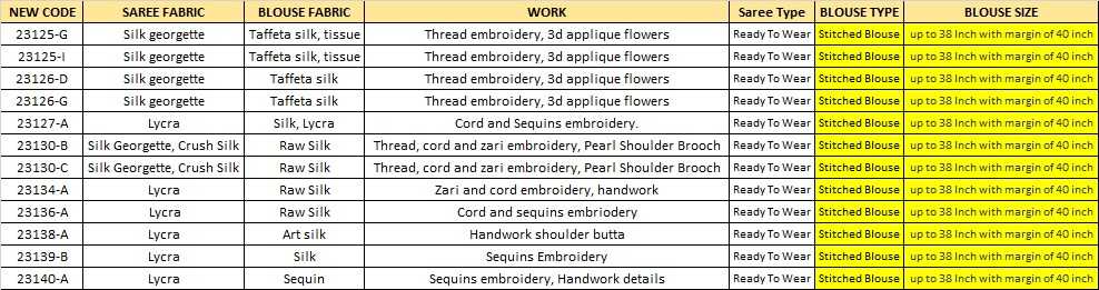 | Note | Stitching available on customer Requirment For Sarees , Salwar Kameez, Lehengha.(i.e M,L,XL,XXL). |