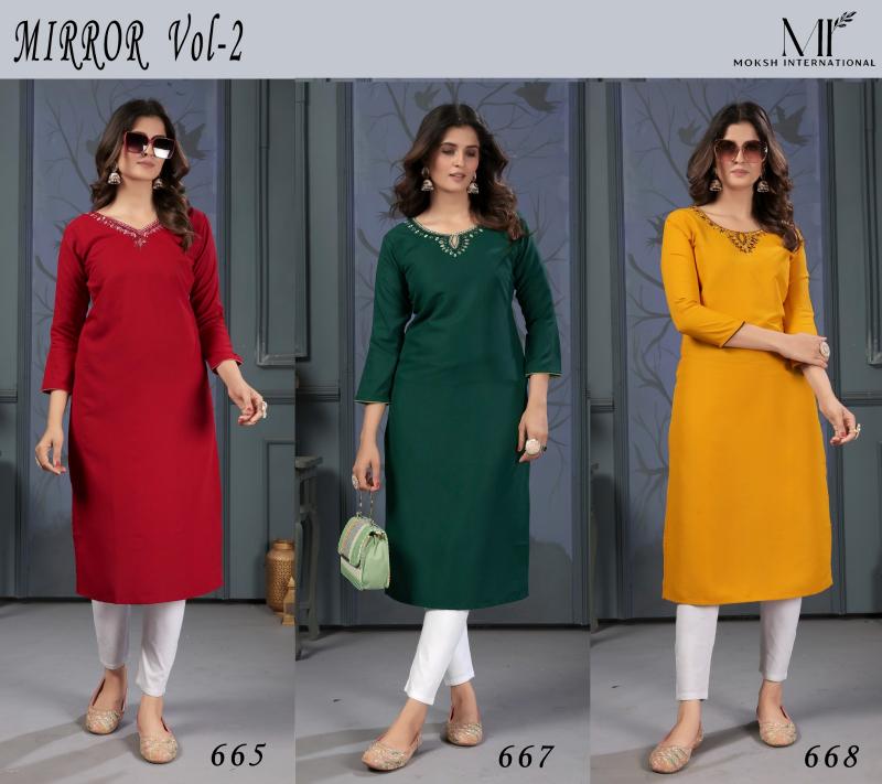 Moksh International 🌟 Mirror Vol-2️⃣ 🌟 Fabric Details⬇ 💶RATE- Without Pent- 435 No any less With Lycra Pent-635 No any less 💃 Designs : 3️⃣ Size - S-36 M-38 L-40 XL-42 XXL-44 3XL-46 Single✅Combo✅Set All Available Regards |