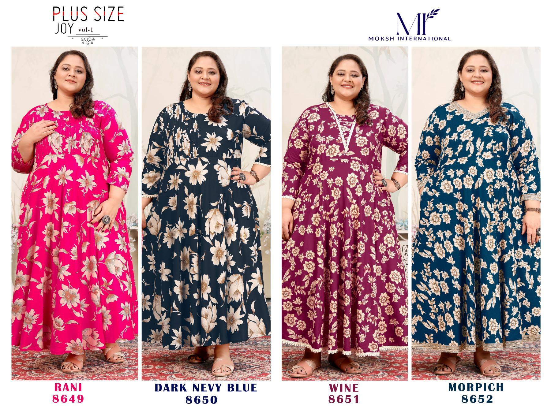 Moksh International 🌟 Plus Size Joy Vol-1️⃣ 🌟 Fabric Details⬇ 💶 RATE - 1045 No Any Less 💃 Designs : 4 Size- 3XL-46 4XL-48 5XL-50 6XL-52 7XL-54 8XL-56 9XL-58 10XL-60 Moksh International |