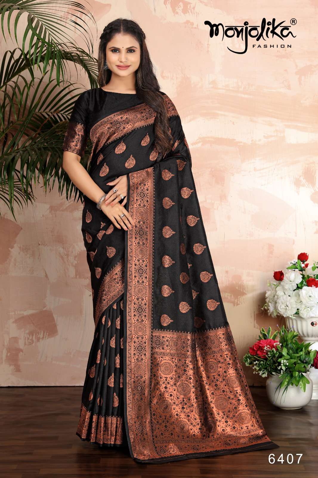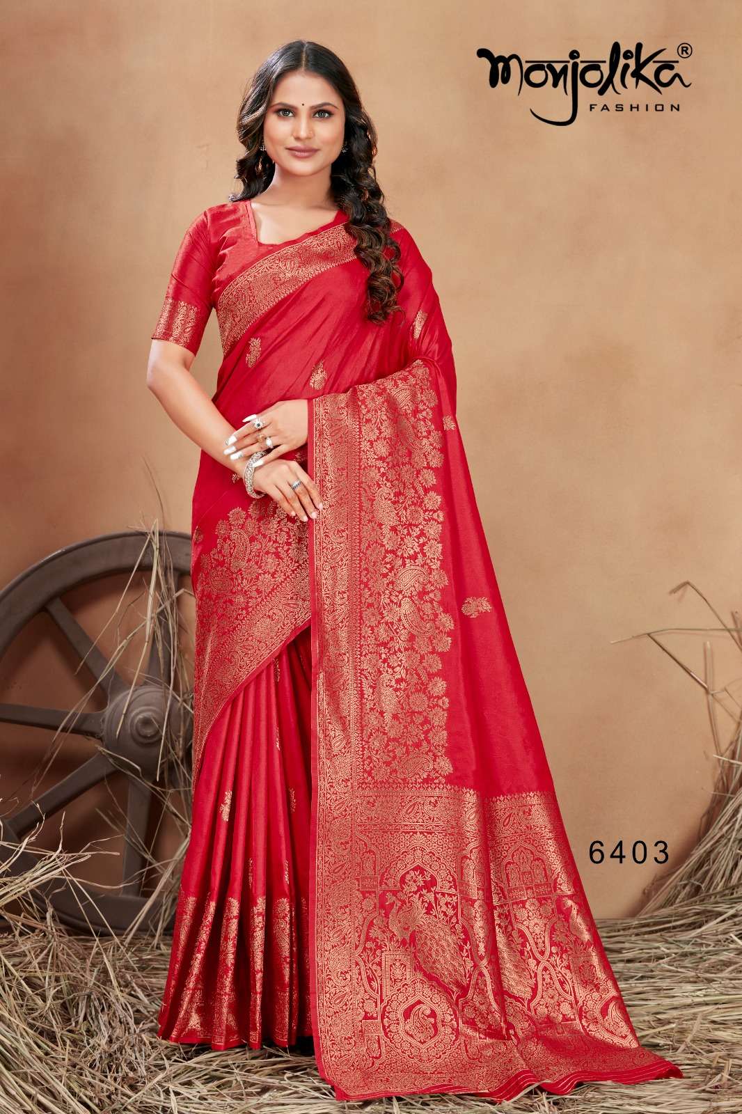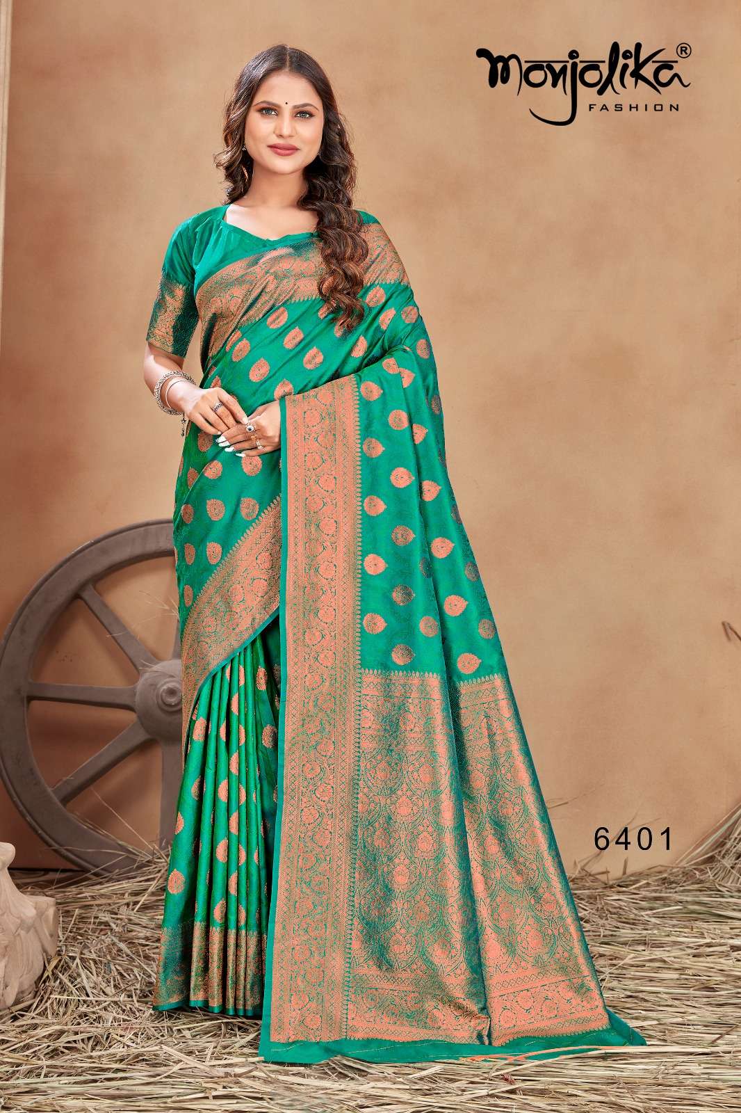 monjolika fashion mahadevi 6400 designer wedding banarasi silk saree collection