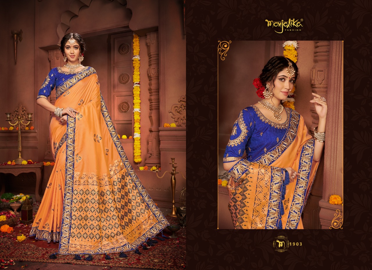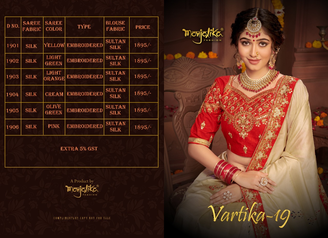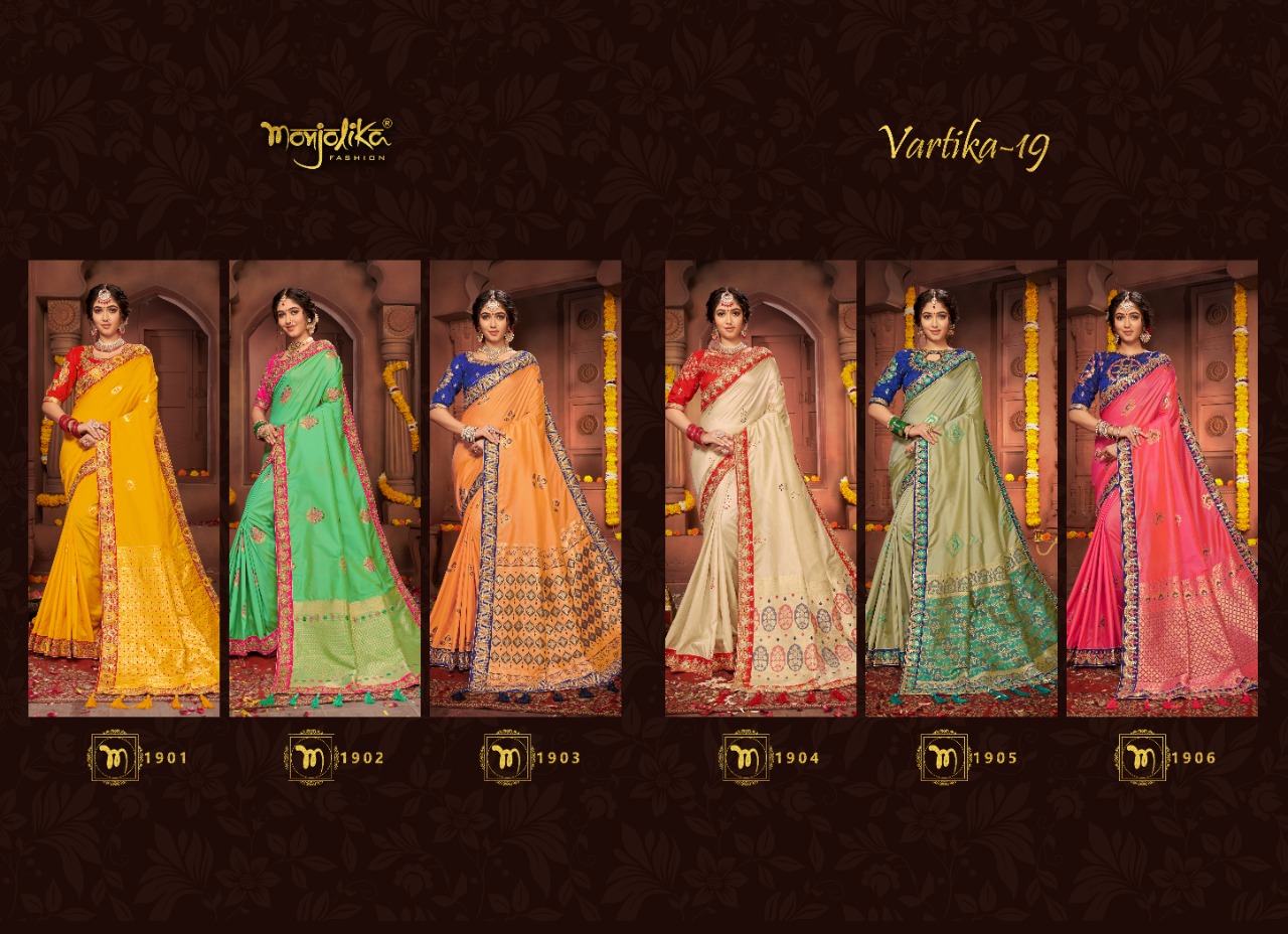 Monjolika Fashion Vartika Vol 19 Embroidery Silk Wedding Saree Wholesaler
