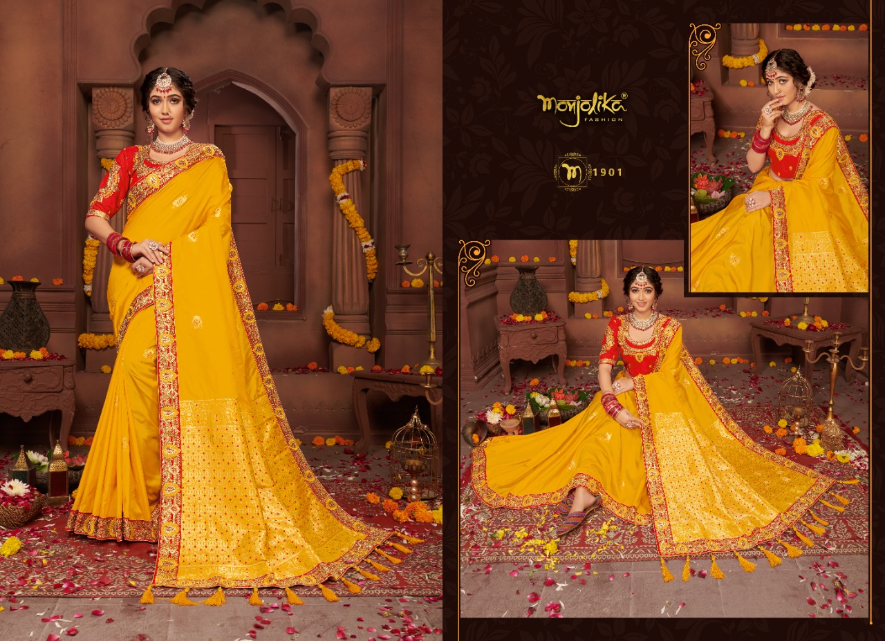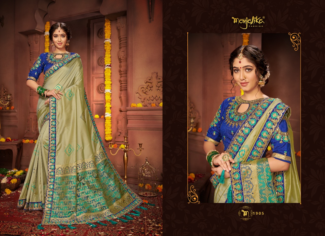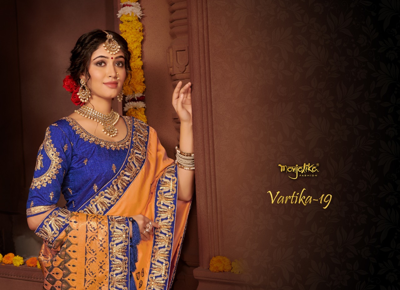 Monjolika Fashion Vartika Vol 19 Embroidery Silk Wedding Saree Wholesaler