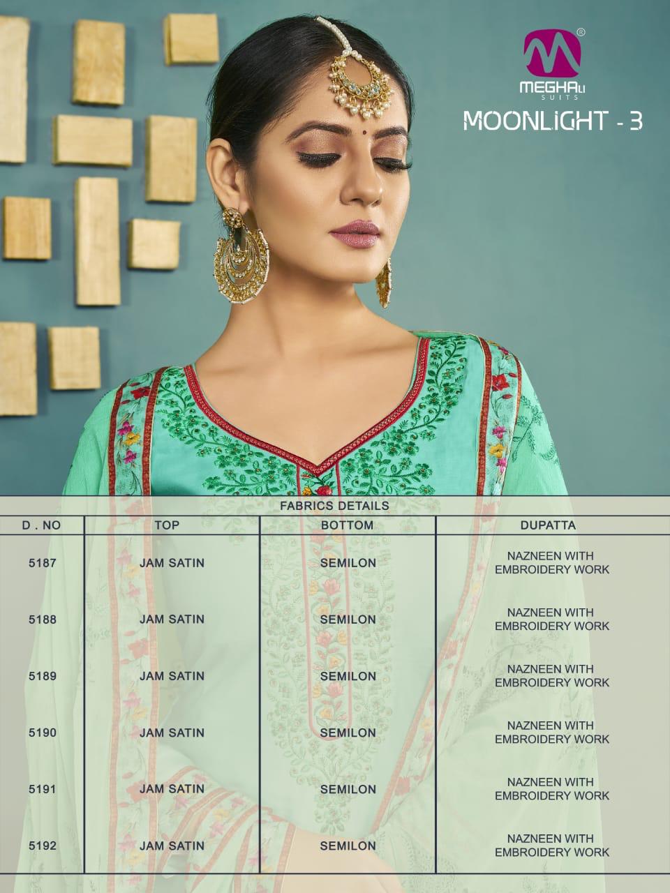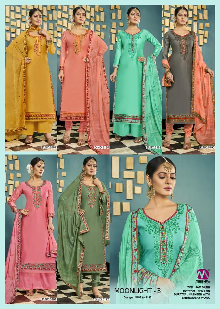 MEGHALI SUITS MOONLIGHT VOL 3 JAM SATIN SALWAR SUIT 6 PC 975+GST |
