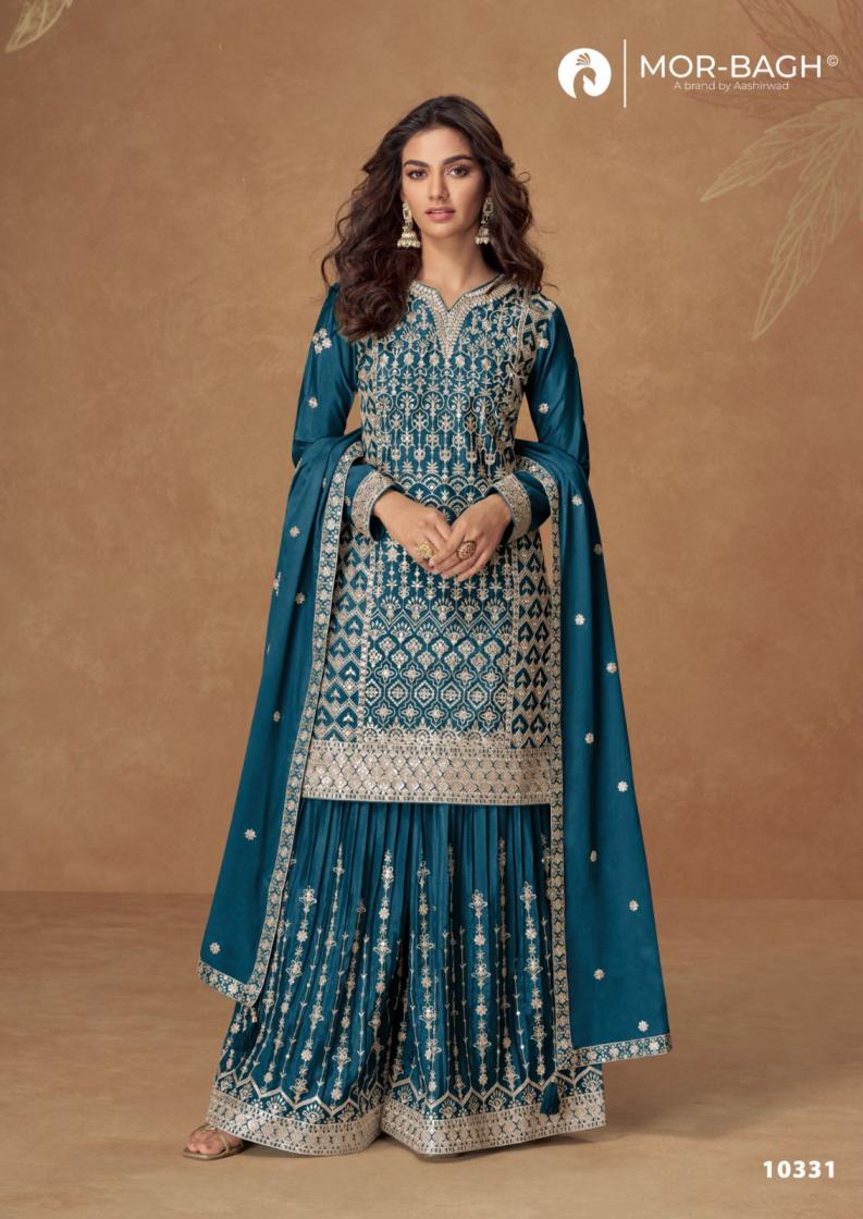 mor bagh aashirwad creation pakiza fully stitch chinon silk exclusive plazzo style 3pcs dress