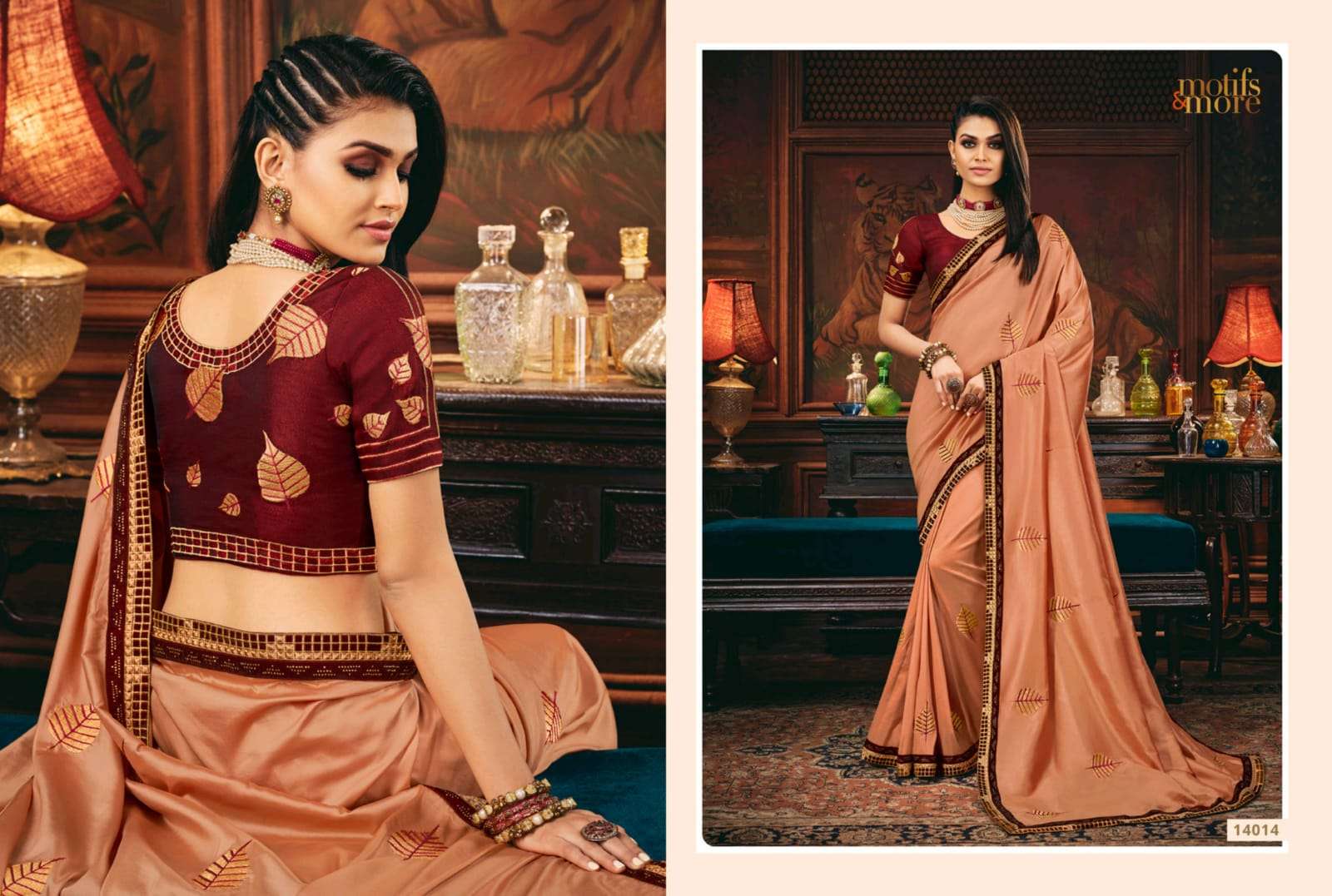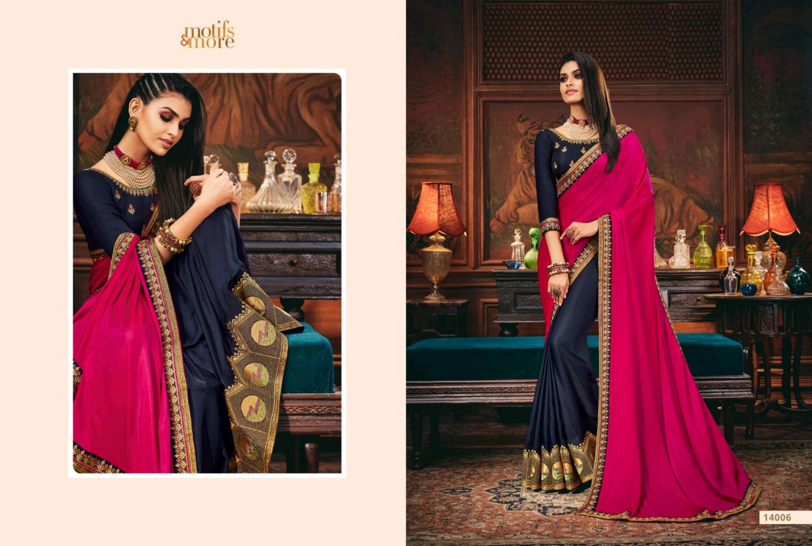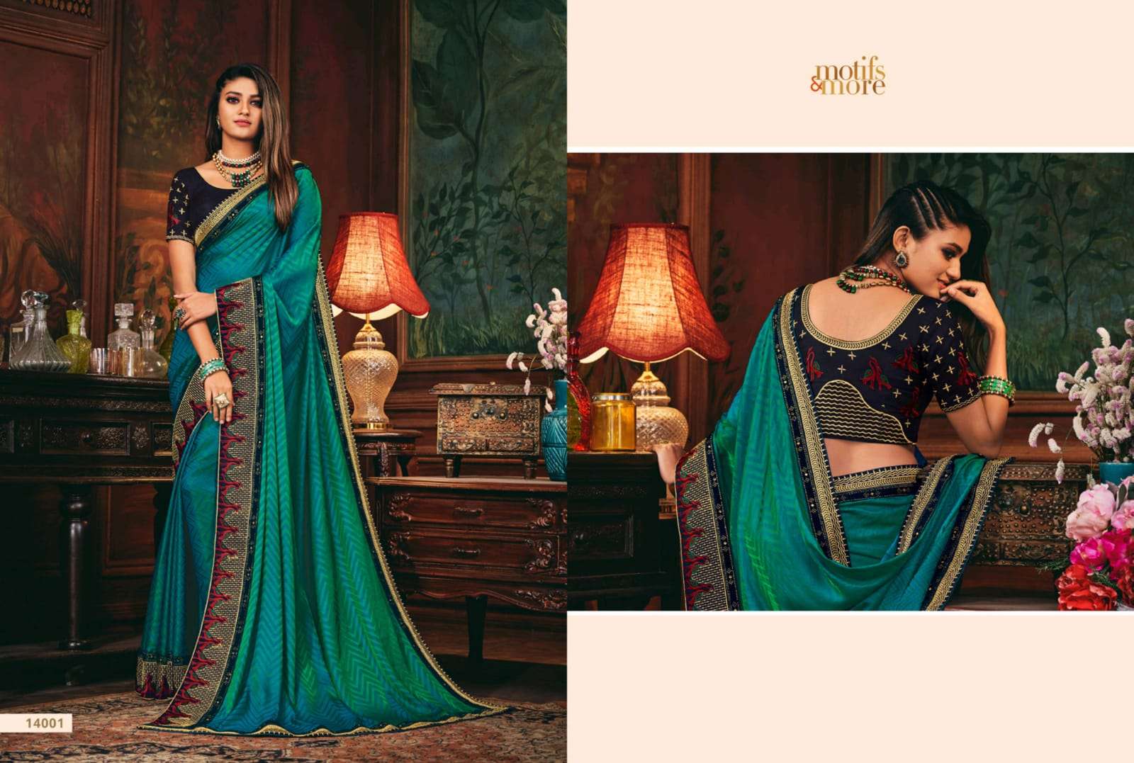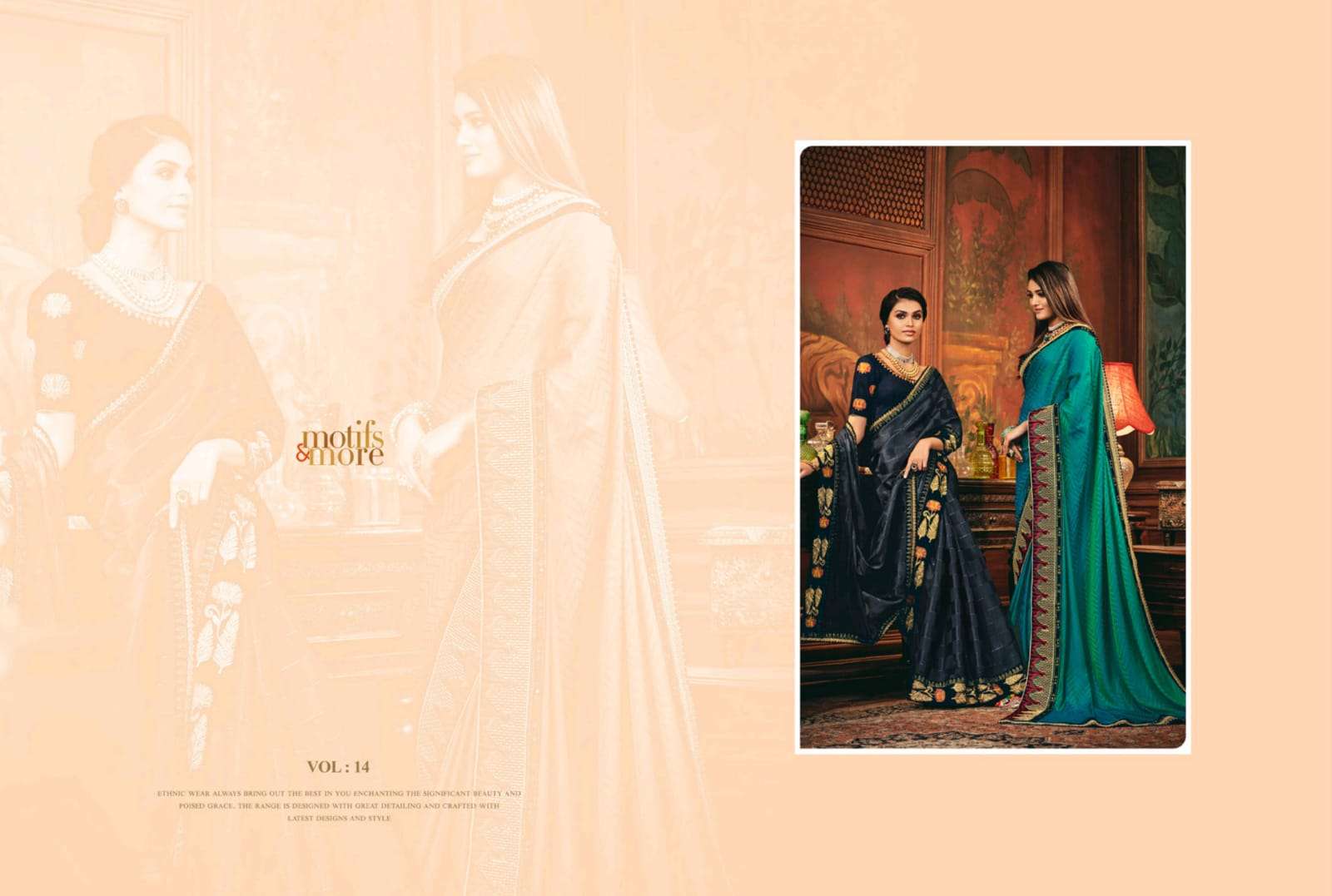 motifs & more vol 14 series 14001-14016 classy look designer fancy indian saree wholesaler