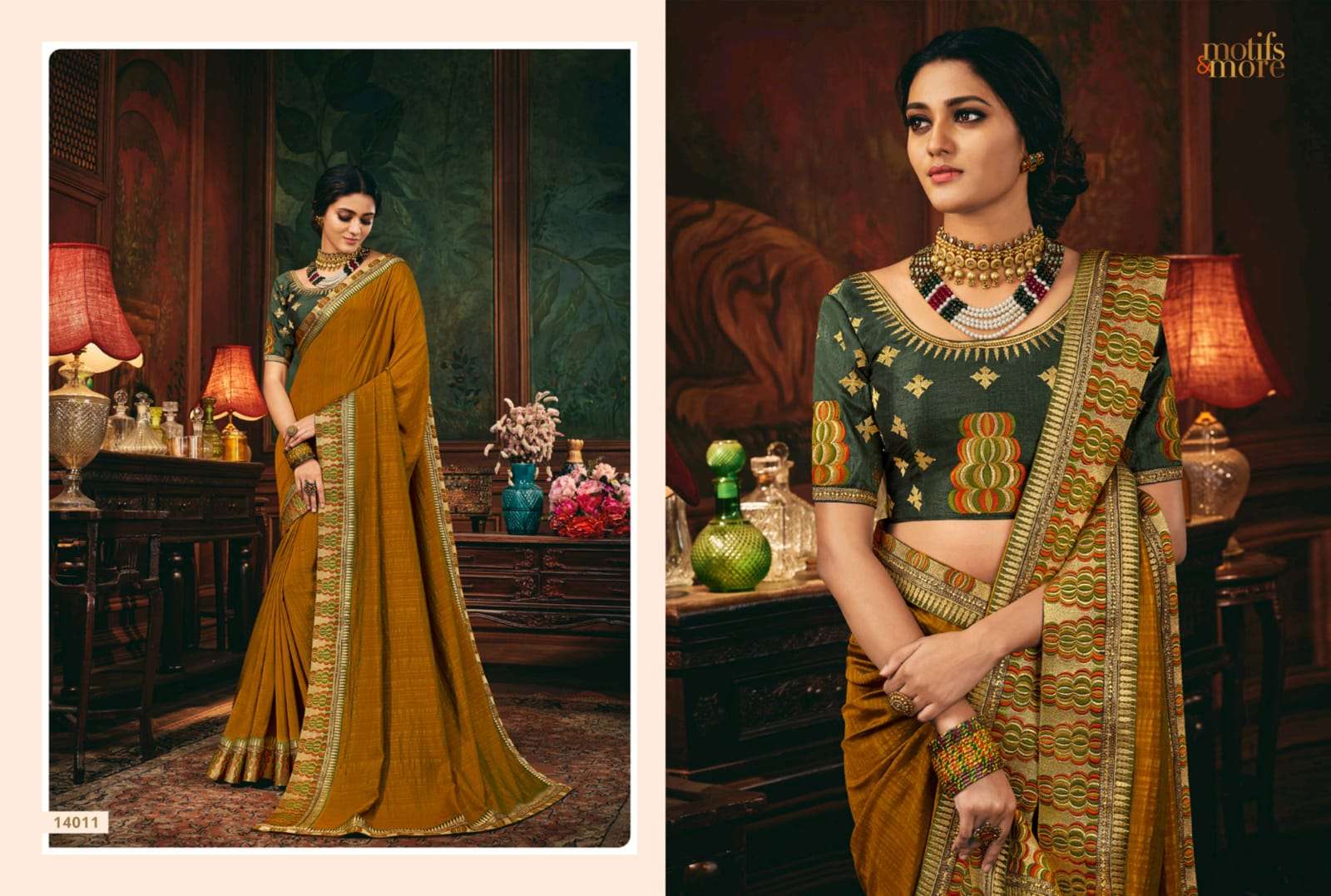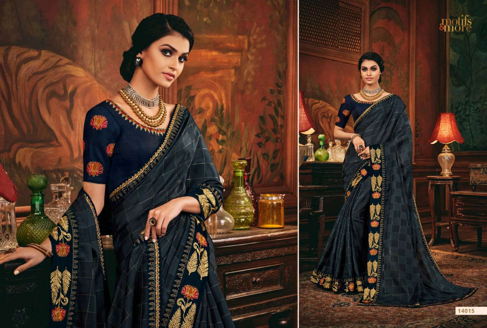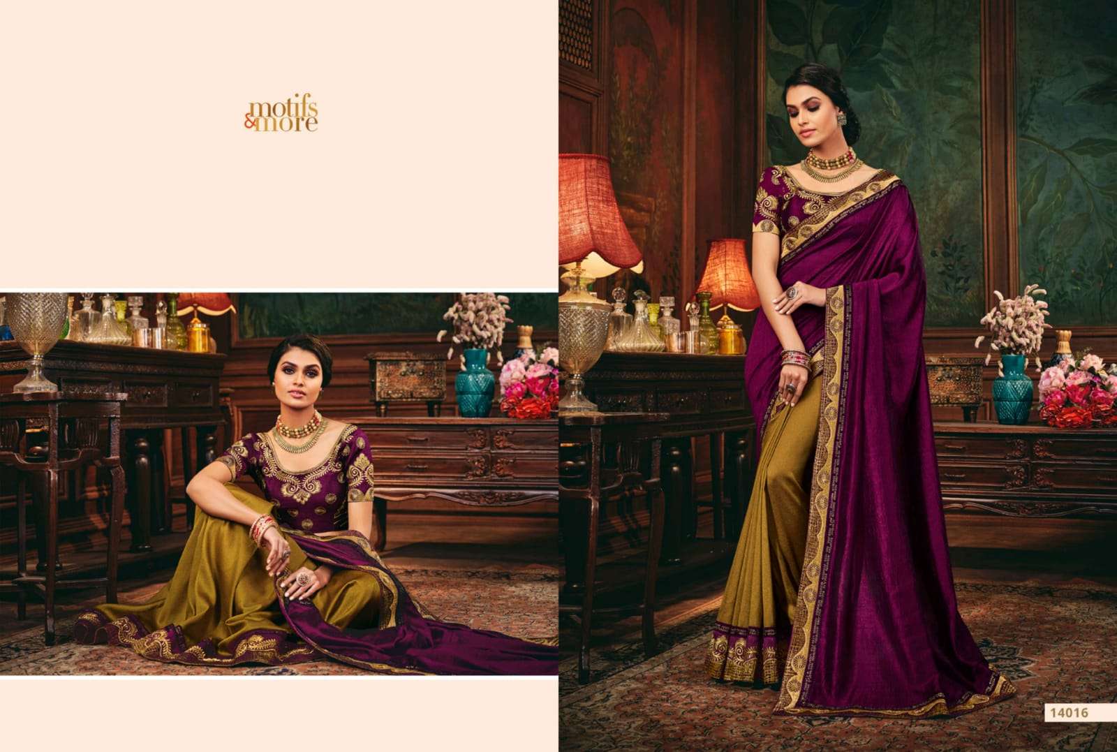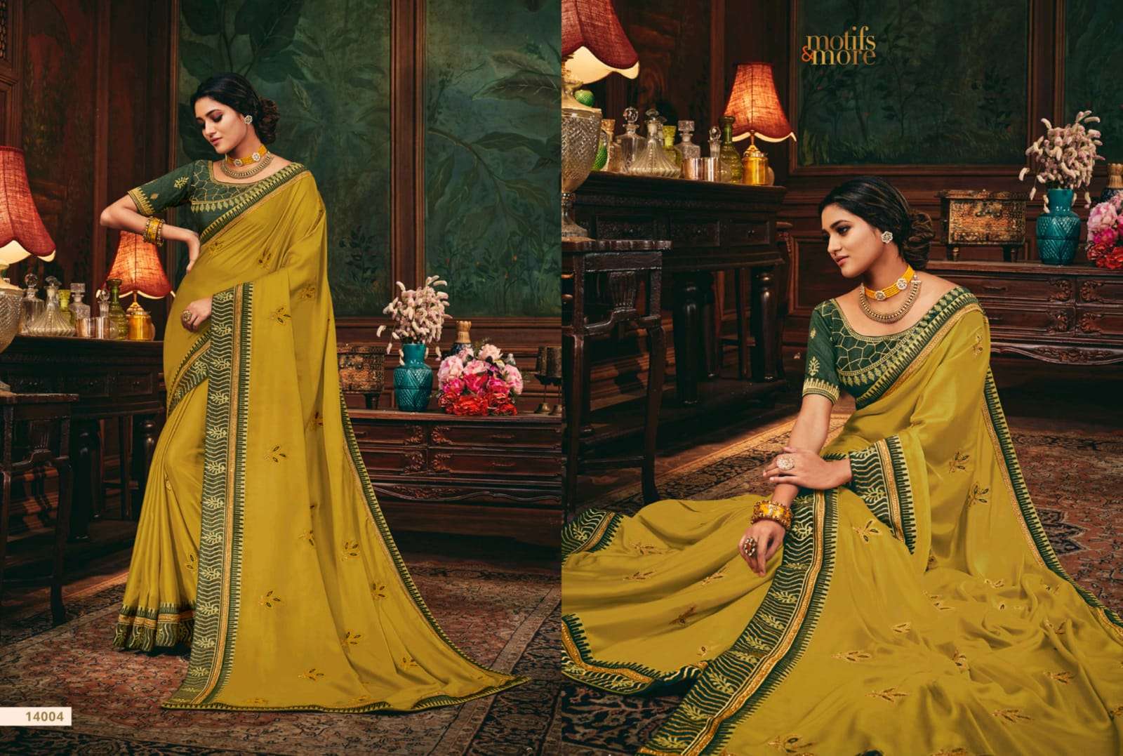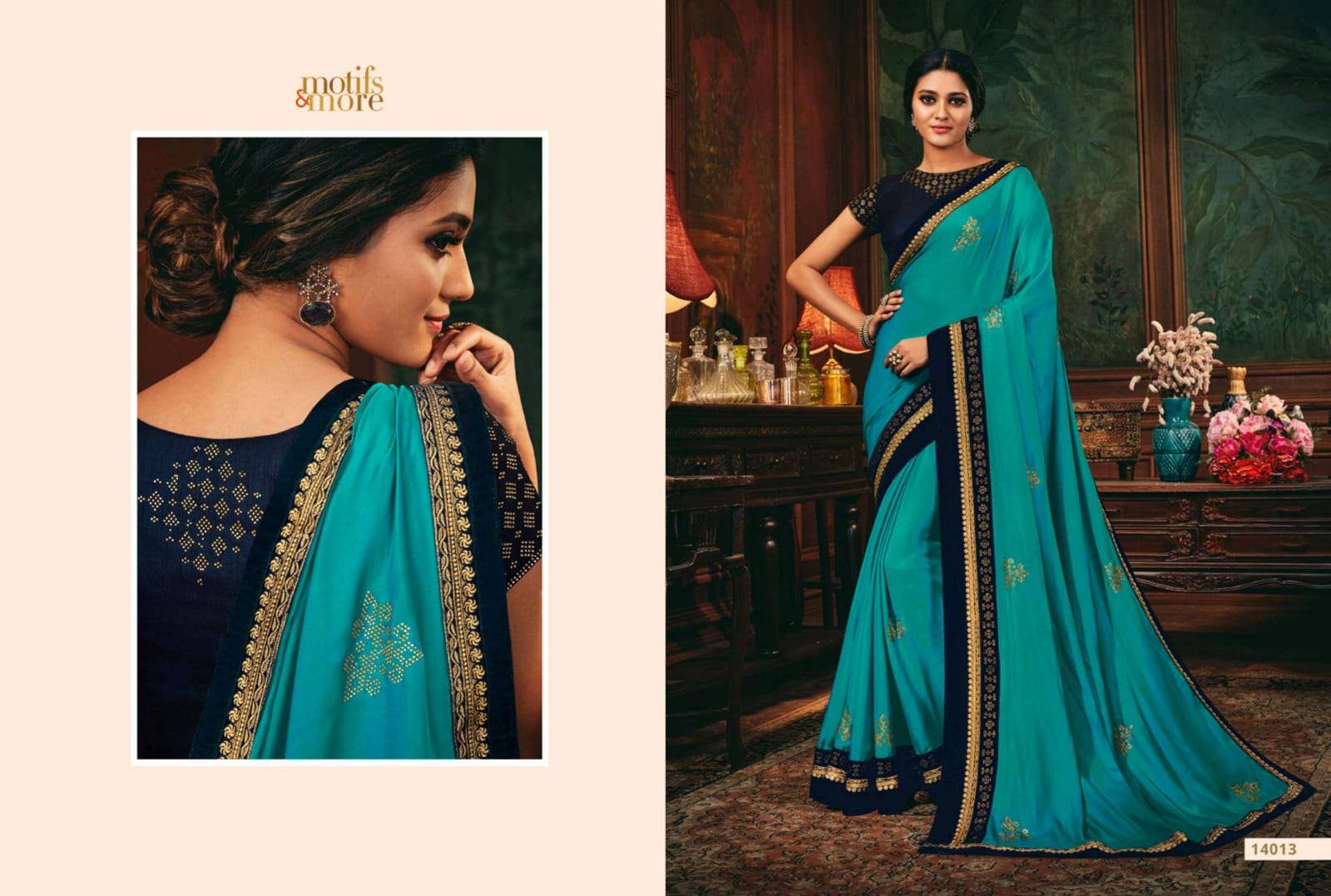 motifs & more vol 14 series 14001-14016 classy look designer fancy indian saree wholesaler